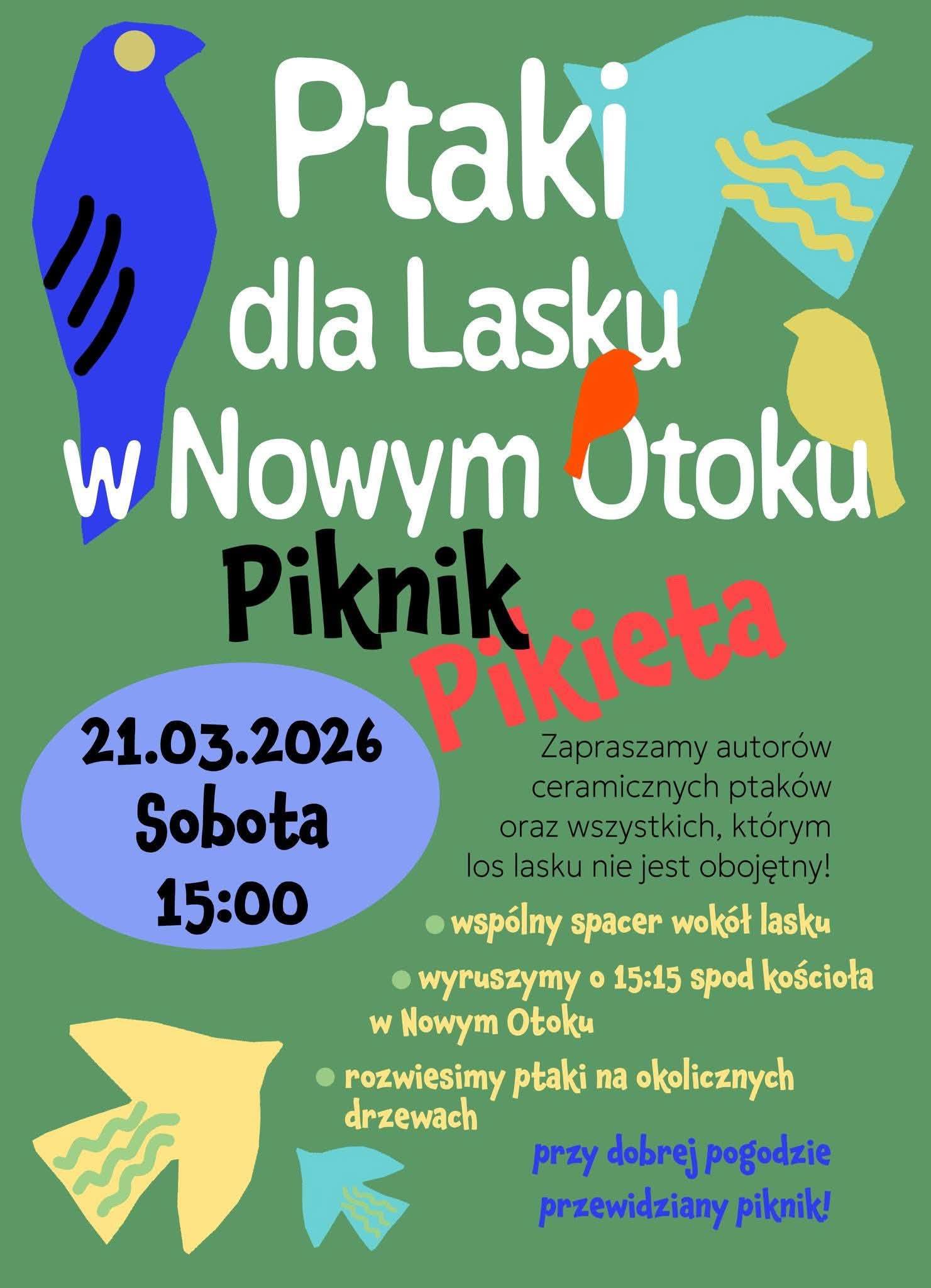 Radny ponownie zaprasza na dzisiejszą (sobota) akcję wieszania ceramicznych ptaków na drzewach - start o 15.00 na placu przy kościele w Nowym Otoku. Jak nam wcześniej zapowiadał radny, zrobione przez mieszkańców ptaki zostaną umieszczone na drzewach, część na skraju lasku ZWiK, ale bez wchodzenia do niego, tylko na wystających gałęziach, a część przy kościele na Nowym Otoku. Jak będzie ostatecznie - zobaczymy.