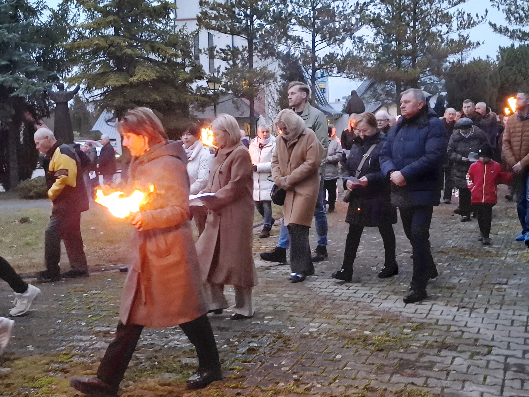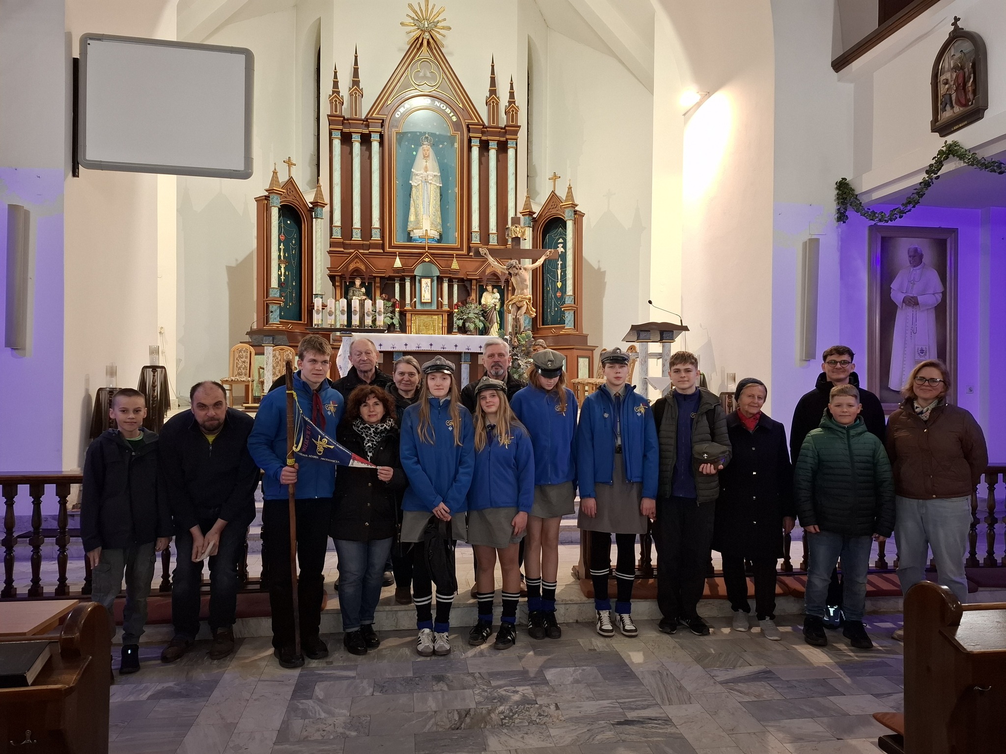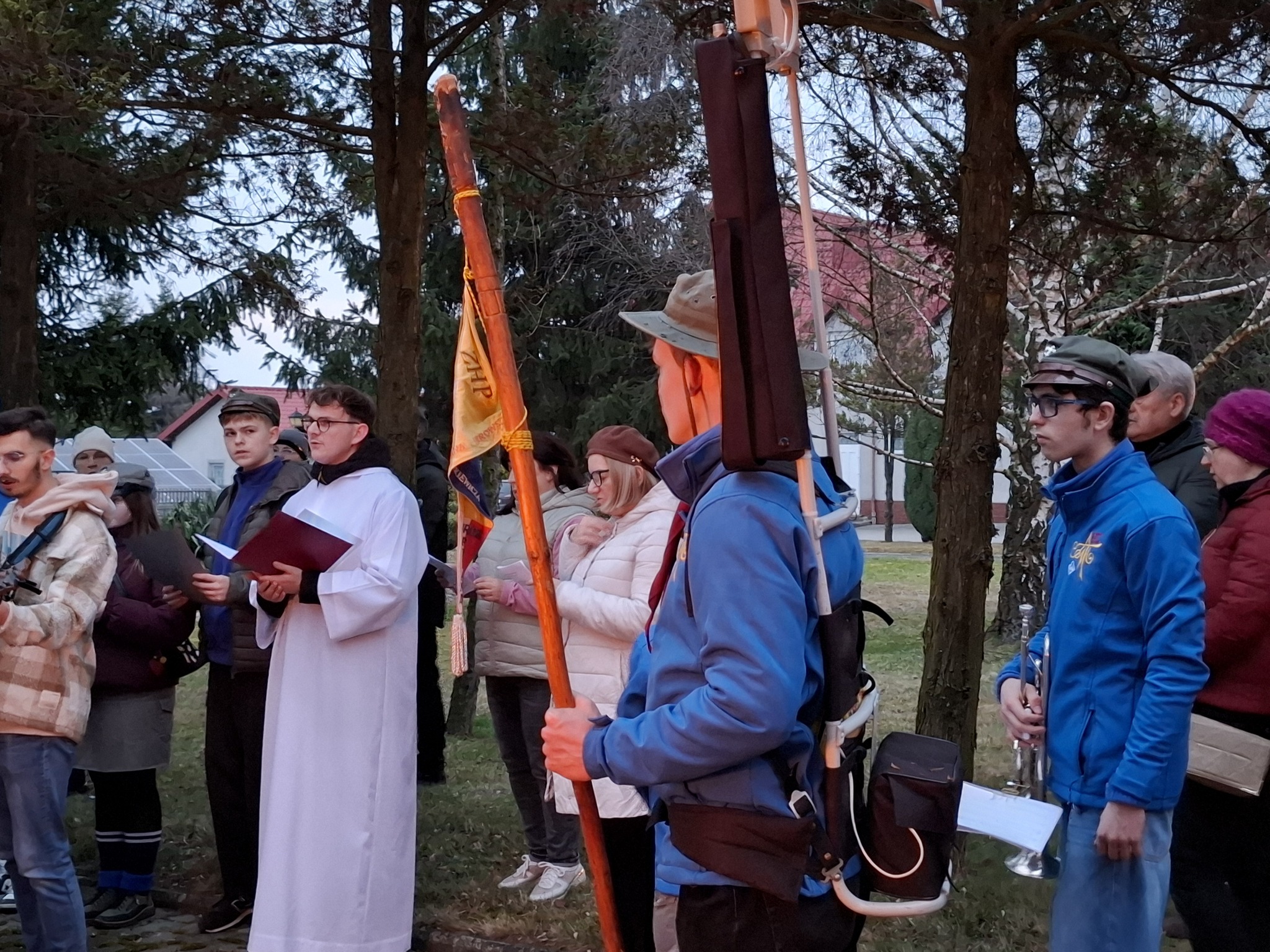 Relacja harcerzy: - Wybraliśmy wyjątkowe miejsce, wymarzone dla harcerzy. Przy kościele w Nowym Otoku stacje Drogi Krzyżowej są rozmieszczone w plenerze i mogliśmy wędrować ze śpiewem pod ciemniejącym niebem rozpraszając mrok pochodniami. Przygotowaliśmy rozważania, pochodnie, teksty pieśni, zadbaliśmy o bezpieczeństwo. Cieszymy się, że byli z nami nasi Instruktorzy z Kręgu Seniorów Sami Swoi - dziękujemy Druhnom i Druhom za obecność i wspólne chwile skupienia. Nie spodziewaliśmy się tak licznego przybycia Wiernych spoza harcerskiego kręgu. Bardzo wielu dziękowało nam za taką formę wspólnego przeżywania Wielkiego Postu, ludzie byli bardzo wzruszeni, i zapraszali nas znów. Sam Ksiądz Proboszcz (dziękujemy za przewodniczenie modlitwie i przyjęcie nas, mimo trudnego czasu rekolekcji) powiedział, że od czasów pandemii nie było takiej modlitwy w plenerze. Gorąco dziękujemy Panu Dawidowi za możliwość wprowadzenia naszego pomysłu w życie i zaproszenie do oprawy nabożeństwa także zespołu parafialnego. Przez lata włączaliśmy się do organizacji Dróg Krzyżowych, tym razem jednak mieliśmy sporo obaw, czy wcielić w życie naszą inicjatywę. Ale przecież - przygotowujemy się do 26th World Scout Jamboree Polska 2027, a jego przesłanie mówi "Everything you do, do it bravely".
