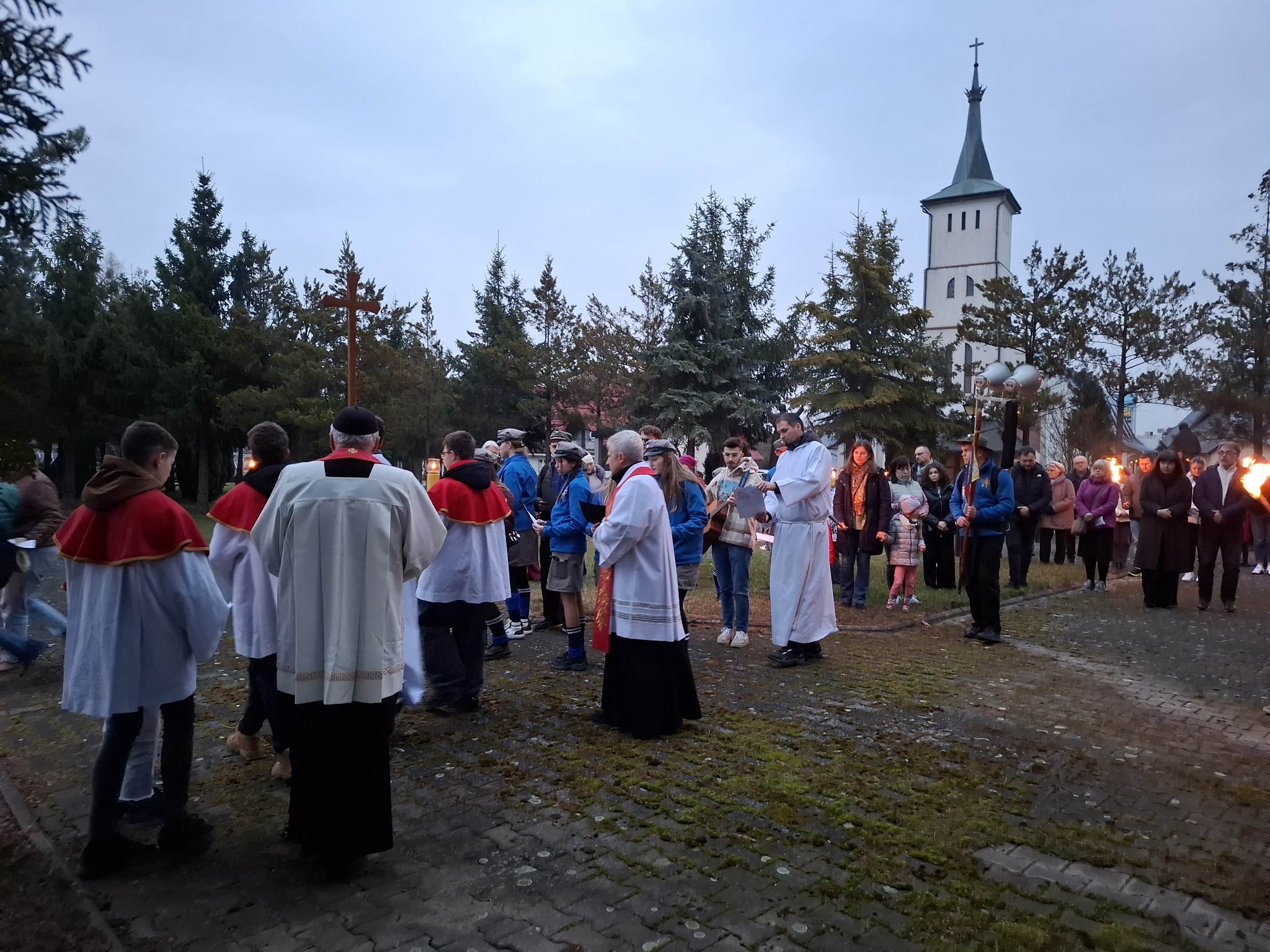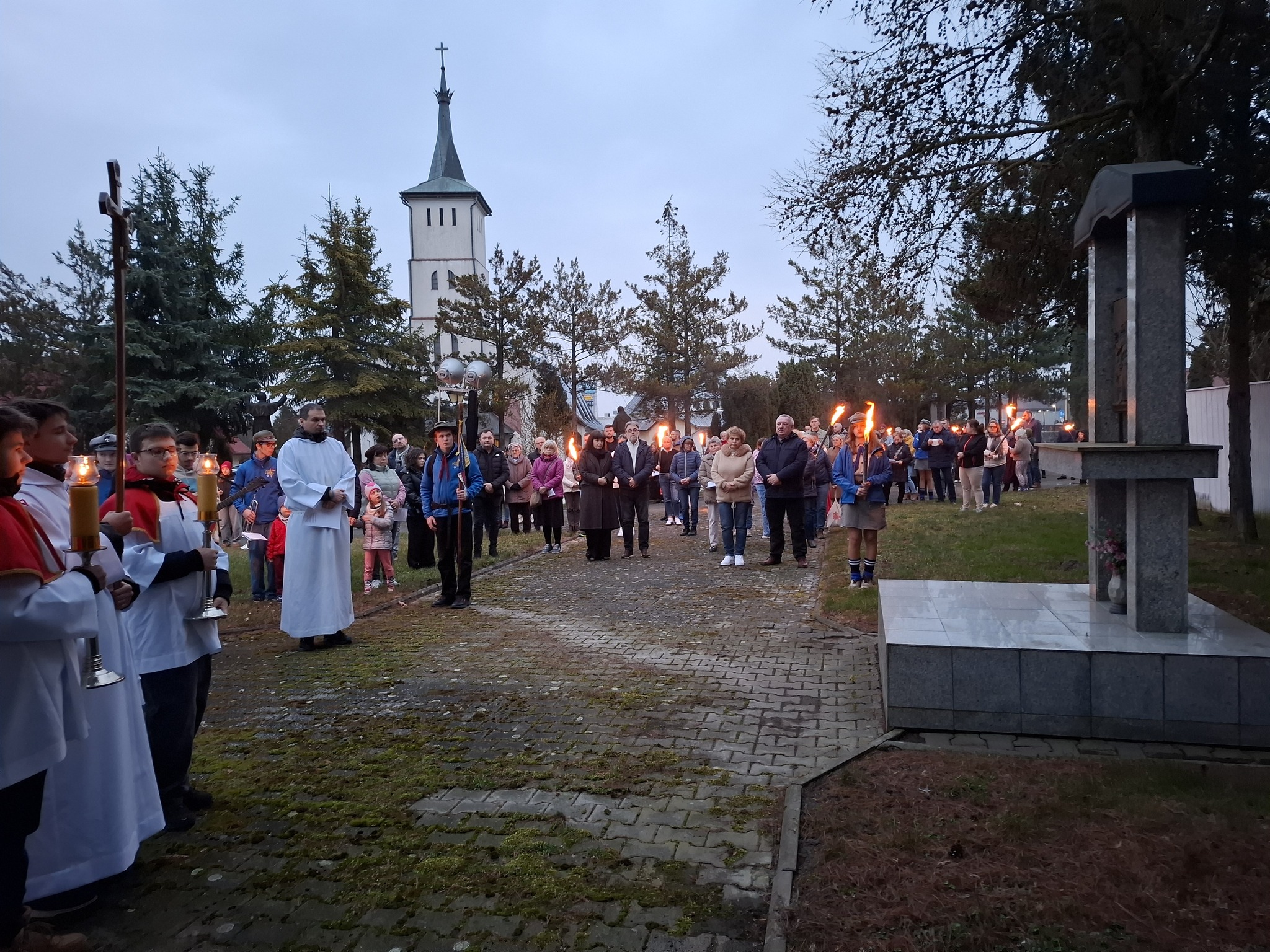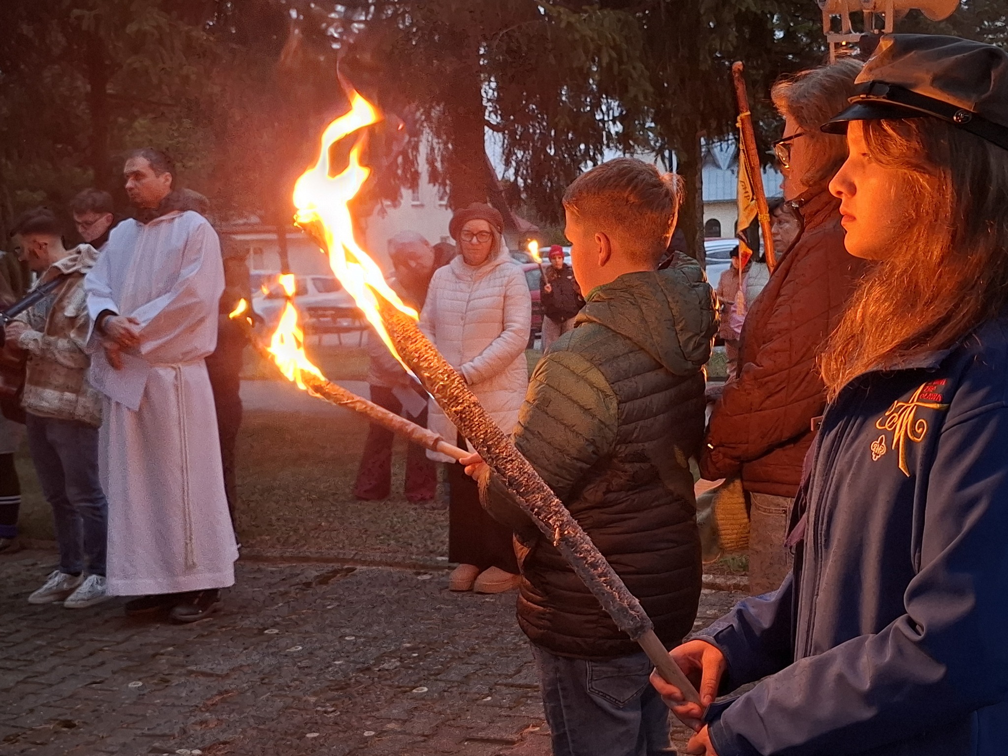 Relacja harcerzy: - Wybraliśmy wyjątkowe miejsce, wymarzone dla harcerzy. Przy kościele w Nowym Otoku stacje Drogi Krzyżowej są rozmieszczone w plenerze i mogliśmy wędrować ze śpiewem pod ciemniejącym niebem rozpraszając mrok pochodniami. Przygotowaliśmy rozważania, pochodnie, teksty pieśni, zadbaliśmy o bezpieczeństwo. Cieszymy się, że byli z nami nasi Instruktorzy z Kręgu Seniorów Sami Swoi - dziękujemy Druhnom i Druhom za obecność i wspólne chwile skupienia. Nie spodziewaliśmy się tak licznego przybycia Wiernych spoza harcerskiego kręgu. Bardzo wielu dziękowało nam za taką formę wspólnego przeżywania Wielkiego Postu, ludzie byli bardzo wzruszeni, i zapraszali nas znów. Sam Ksiądz Proboszcz (dziękujemy za przewodniczenie modlitwie i przyjęcie nas, mimo trudnego czasu rekolekcji) powiedział, że od czasów pandemii nie było takiej modlitwy w plenerze. Gorąco dziękujemy Panu Dawidowi za możliwość wprowadzenia naszego pomysłu w życie i zaproszenie do oprawy nabożeństwa także zespołu parafialnego. Przez lata włączaliśmy się do organizacji Dróg Krzyżowych, tym razem jednak mieliśmy sporo obaw, czy wcielić w życie naszą inicjatywę. Ale przecież - przygotowujemy się do 26th World Scout Jamboree Polska 2027, a jego przesłanie mówi "Everything you do, do it bravely".