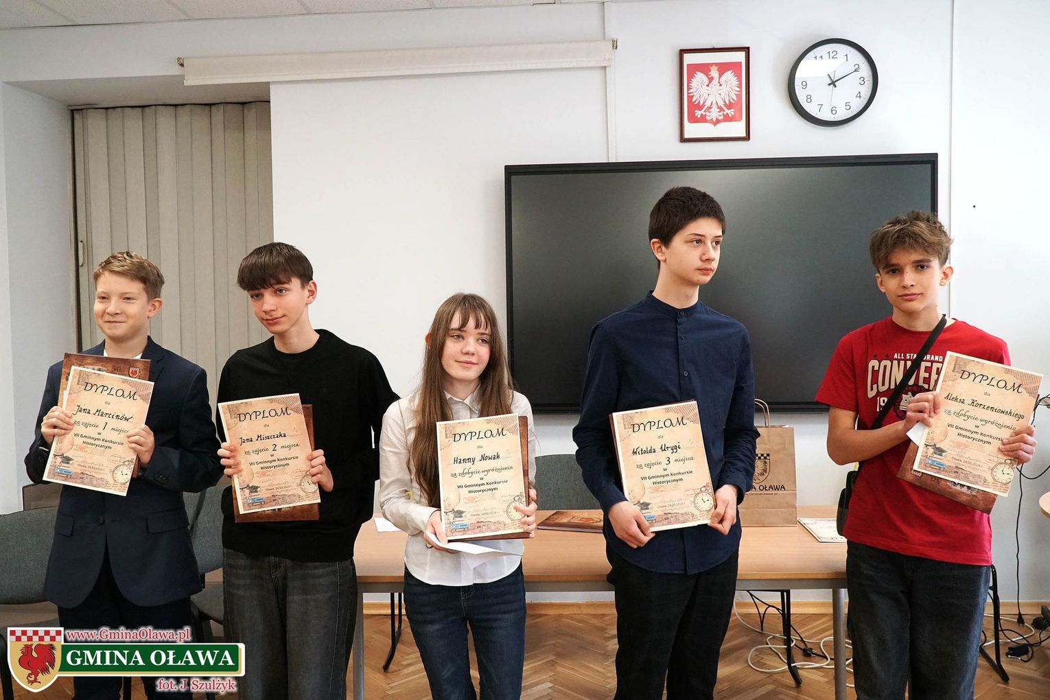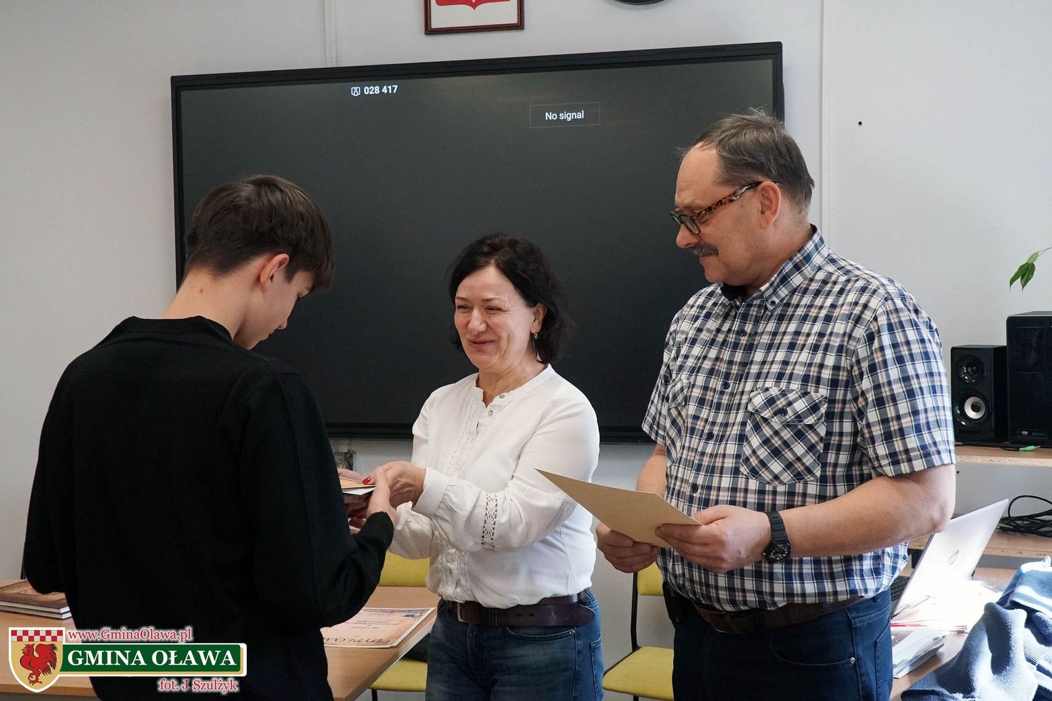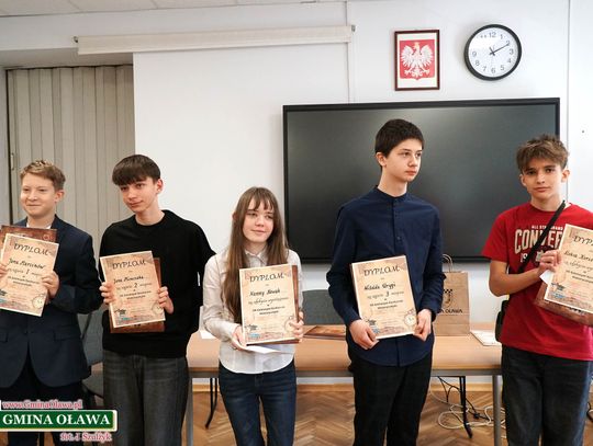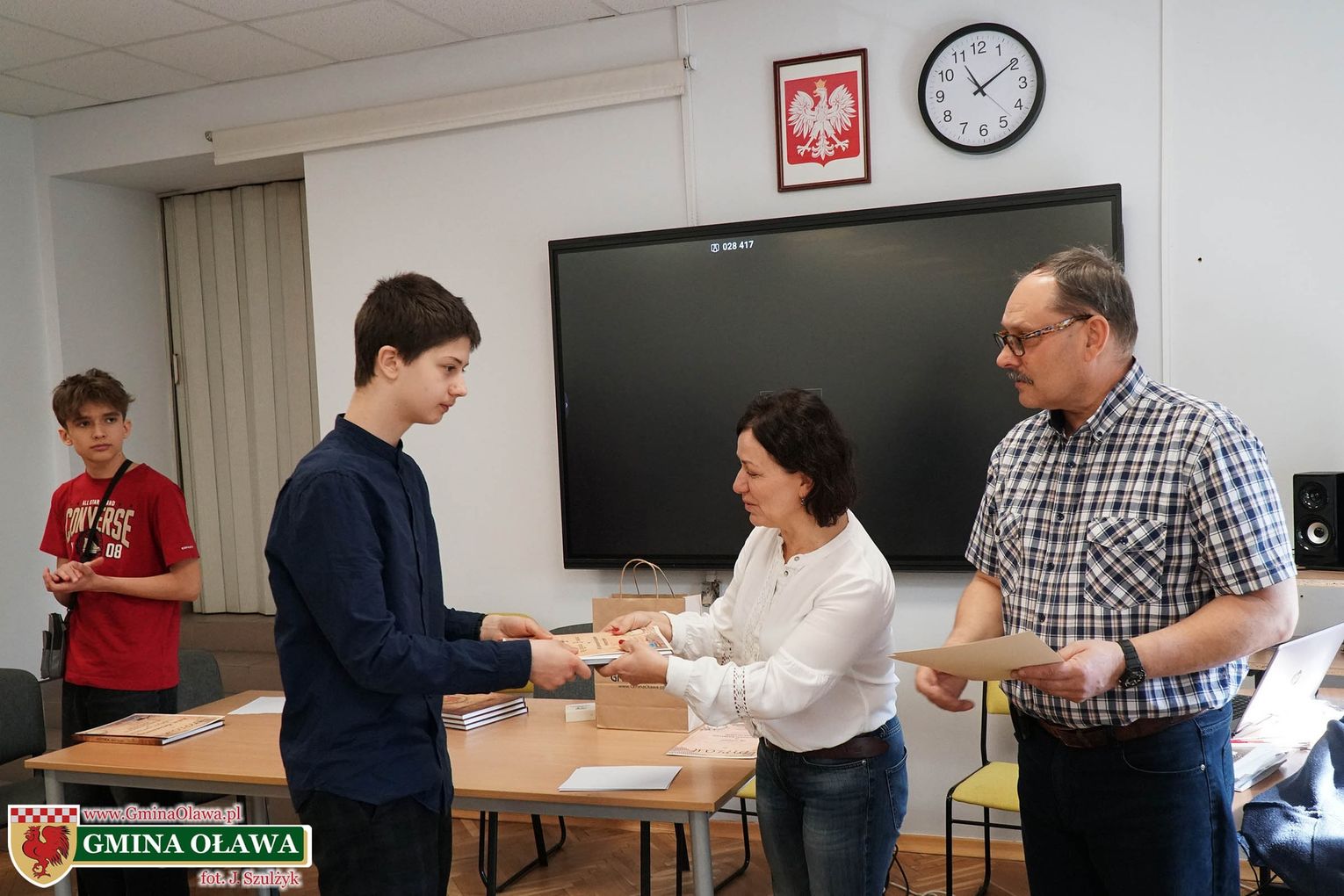 Nagrody oraz pamiątkowe dyplomy wręczyli: Zastępca Wójta Gminy Oława - Helena Masło oraz organizator - Wojciech Kołodziej. Wszystkim laureatom oraz uczestnikom serdecznie gratulujemy ogromnej wiedzy i ducha rywalizacji!