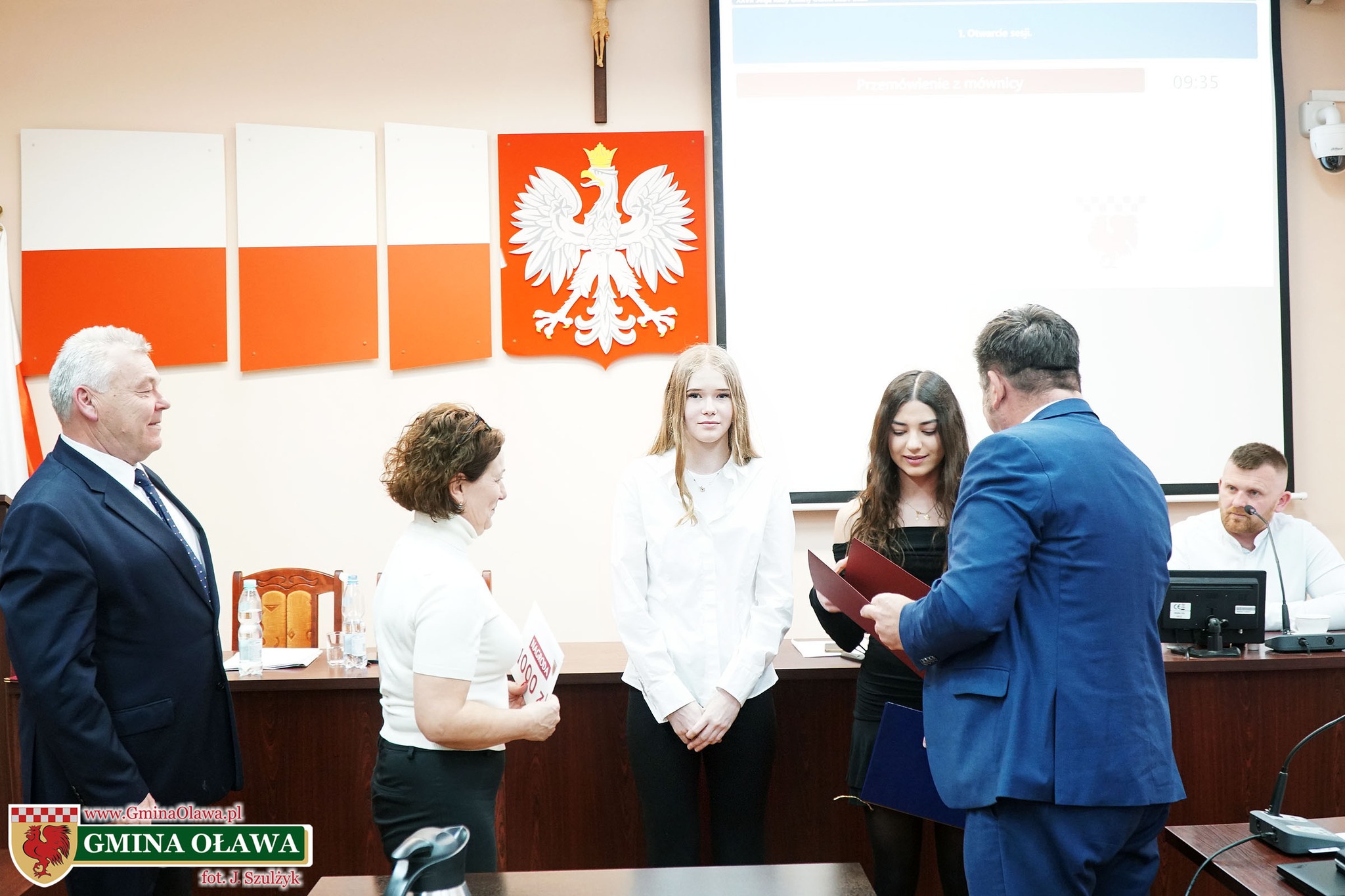 Podczas sesji Rady Gminy Oława 15 marca wójt Artur Piotrowski i jego zastępczyni Helena Masło oraz przewodniczący Rady Gminy Mariusz Olender uroczyście wręczyli nagrody wyjątkowym biegaczkom, które swoimi wynikami podbiły Halowe Mistrzostwa Dolnego Śląska!