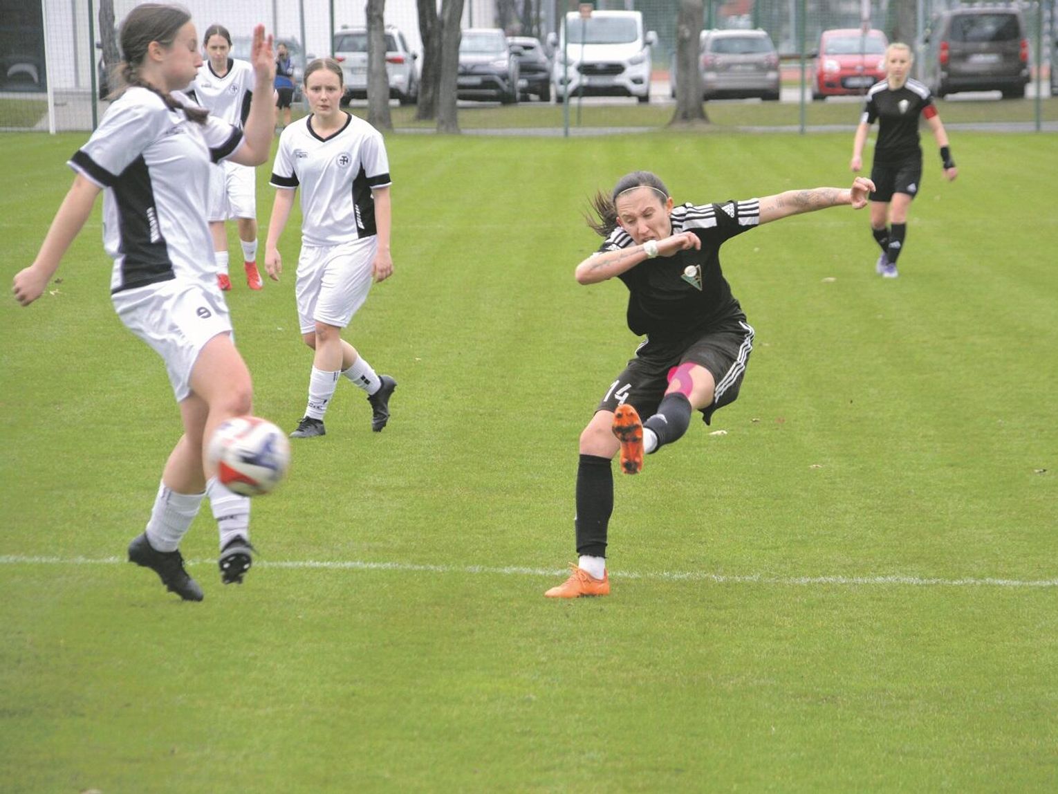 Piłka nożna kobiet.  Dwie różne połowy w meczu trzecioligowego "Moto-Jelcza