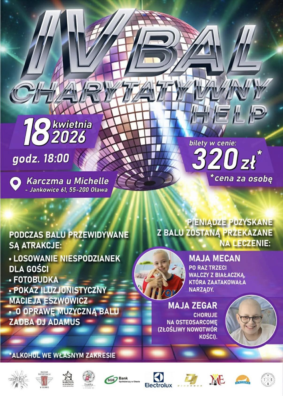 Bal odbędzie się 18 kwietnia, bilety na bal można nabyć w Studiu Reklamy WENA, w Karczmie u Michelle w Jankowicach oraz w Muzeum Motoryzacji WENA. Z organizatorami można się kontaktować poprzez profil facebookowy Help- Heroiczna Ekipa Lokalnej Pomocy.