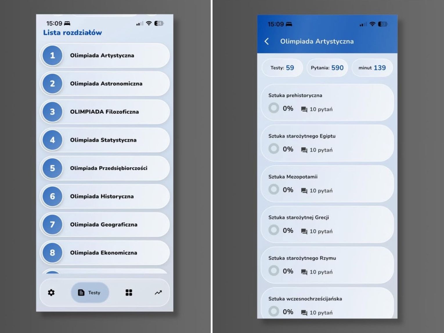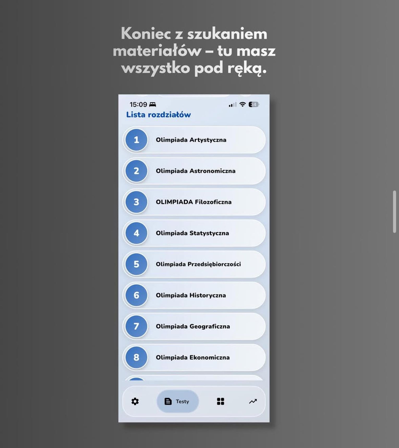 – Chcieliśmy zrobić coś, co sami chcielibyśmy mieć w szkole. Wiemy, jak trudno czasem uporządkować i powtórzyć materiał, dlatego przygotowaliśmy narzędzie, które pozwala uczyć się w dowolnym momencie, w prosty i interaktywny sposób – mówi Michał Burduk, jeden z twórców aplikacji, absolwent LO nr XIV. – Olimpia obejmuje ok. 3000 testów z 11 przedmiotów i 16 olimpiad, a po każdym teście użytkownik otrzymuje ocenę, widzi błędne odpowiedzi i poznaje prawidłowe rozwiązania – dodaje.