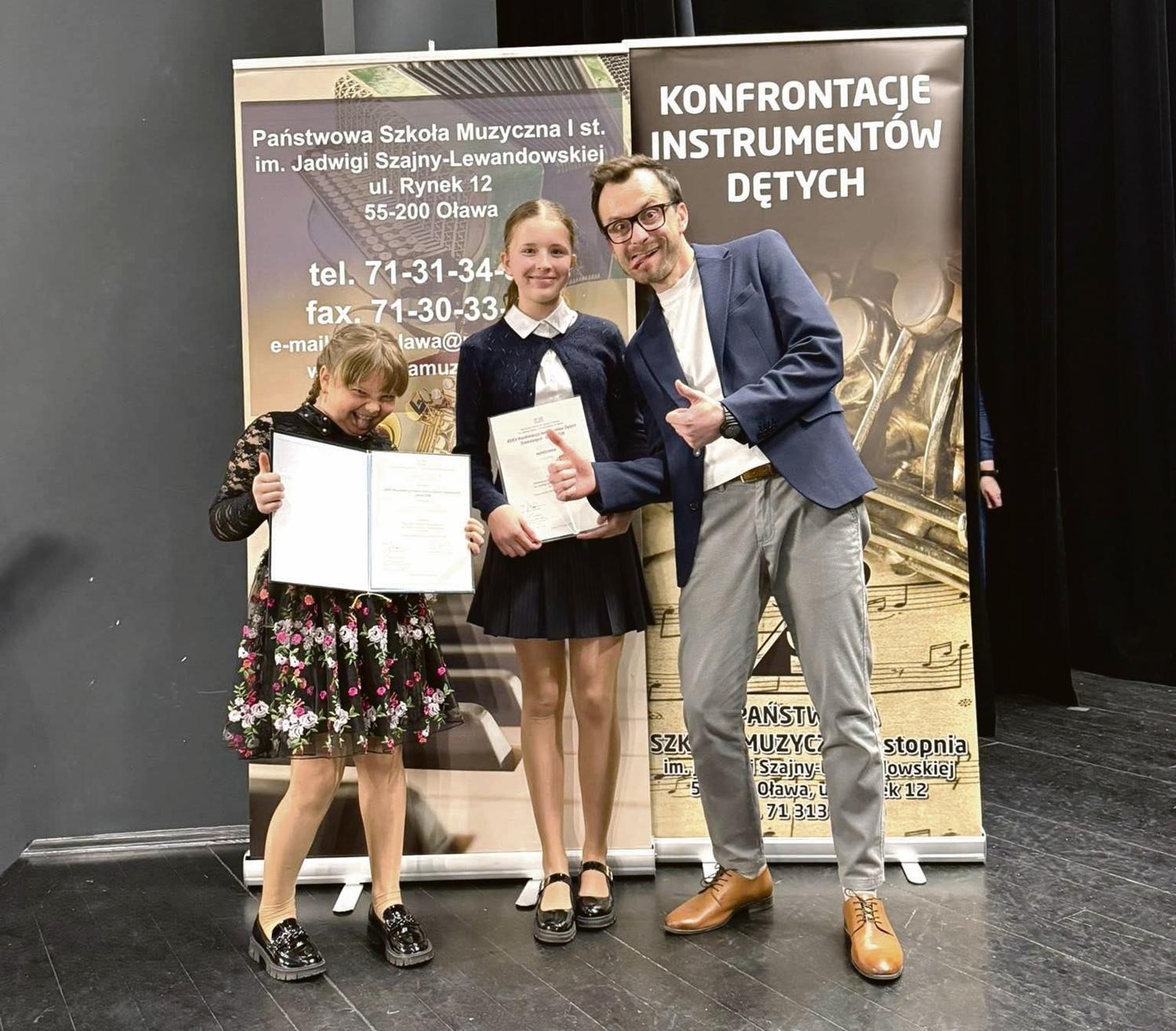 Dawno już oławska szkoła muzyczna nie mogła pochwalić się takim sukcesem. Drugiego dnia przesłuchań konkursowych wystąpiły trzy uczennice oławskiej PSM I st. z klasy klarnetu Mateusza Maszyńskiego: Zuzanna Jackiewicz, Zoja Antczak i Ada Grabowska. I to były jedyne uczennice oławskiej szkoły w tegorocznych Konfrontacjach - w konkursie wzięło udział 83 uczestników z 36 szkół z całej Polski.