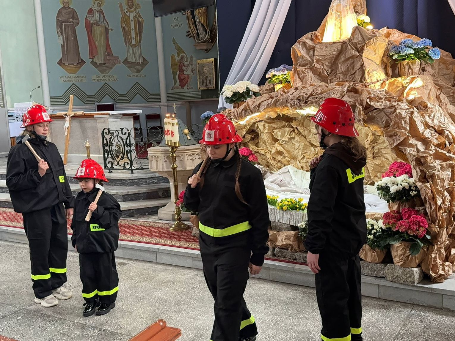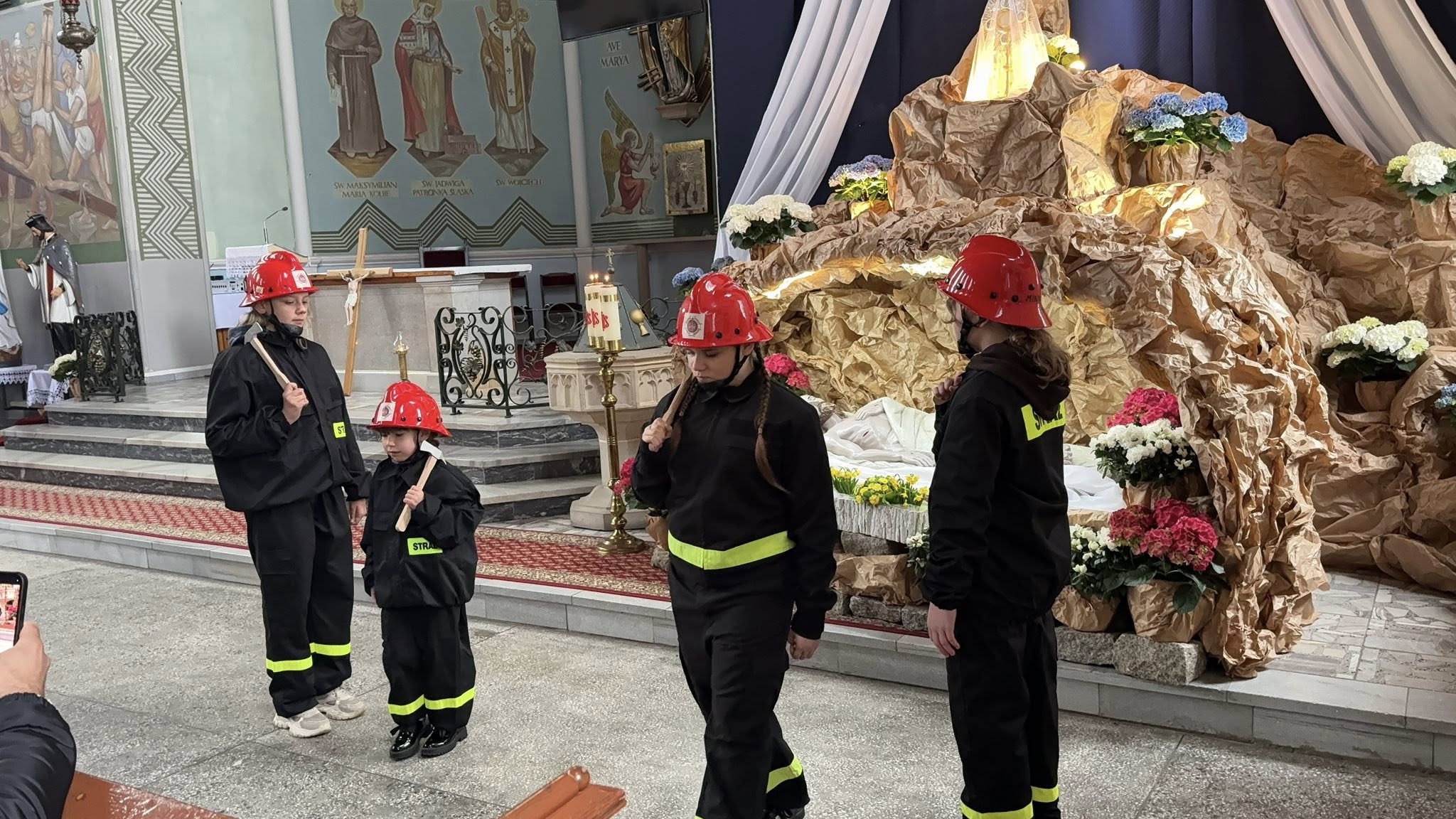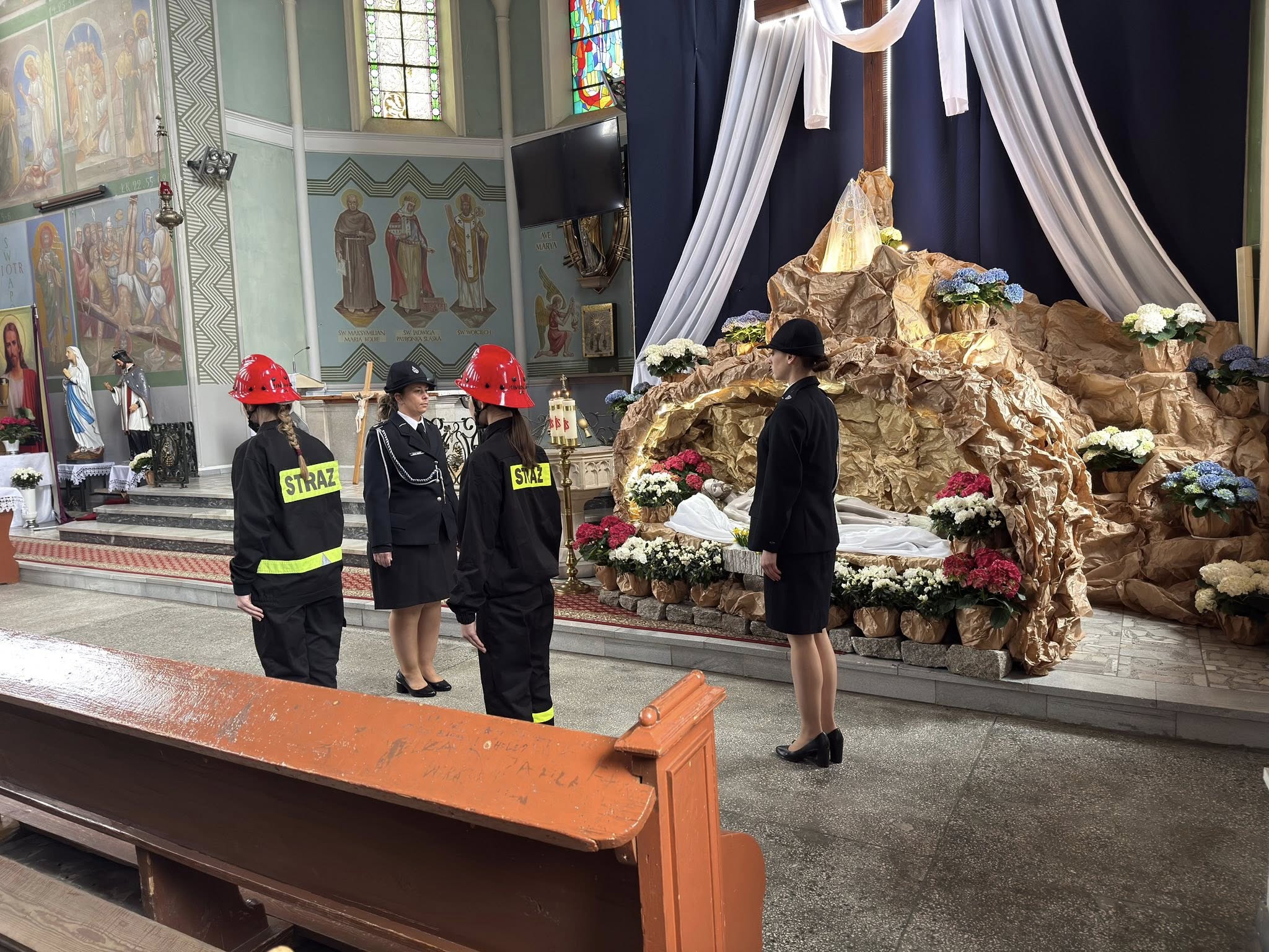 Strażacy w Polsce w wielu miejscach tradycyjnie pełnią warty przy Grobie Pańskim w kościołach podczas Świąt Wielkanocnych (Wielki Piątek i Wielka Sobota), często występując w mundurach galowych z hełmami. Wartę przy Grobie Pańskim strażacy pełnią zmianowo, dbając o powagę i ceremonialny charakter świąt. Podczas tej ceremonii strażacy (szczególnie z OSP - Ochotniczych Straży Pożarnych) noszą galowe mundury, a często również ozdobne hełmy. Obecność strażaków przy Grobie Pańskim symbolizuje czuwanie, poświęcenie oraz gotowość do służby.