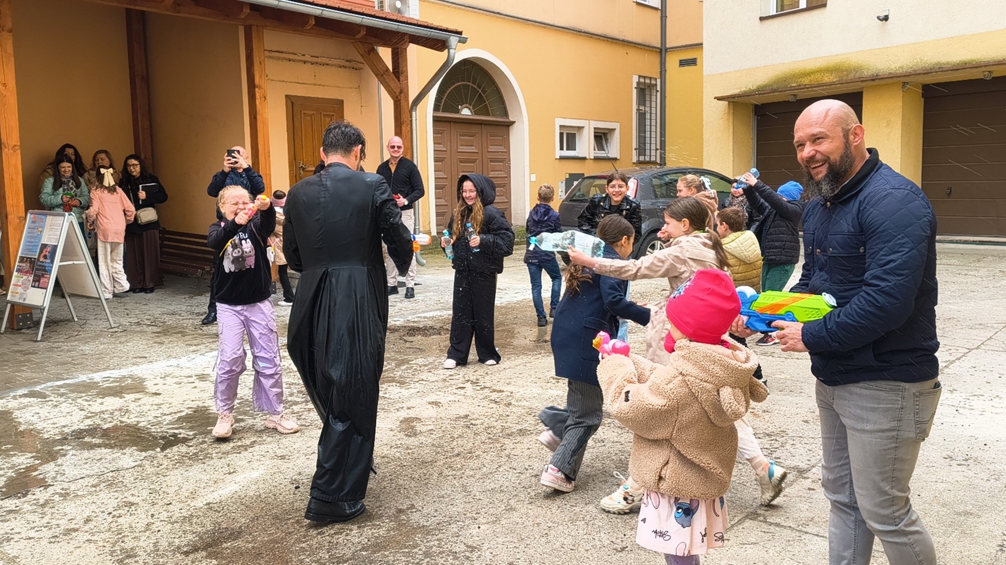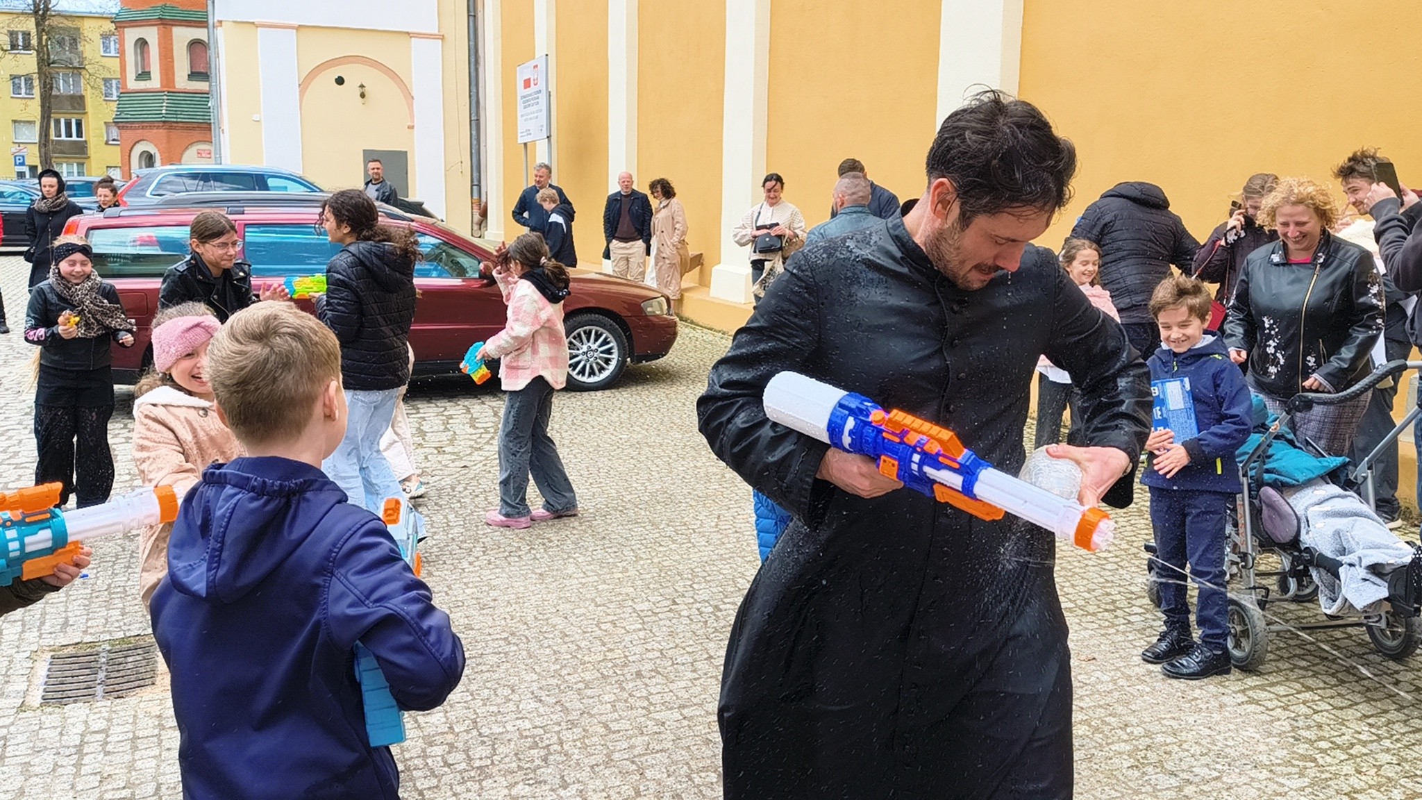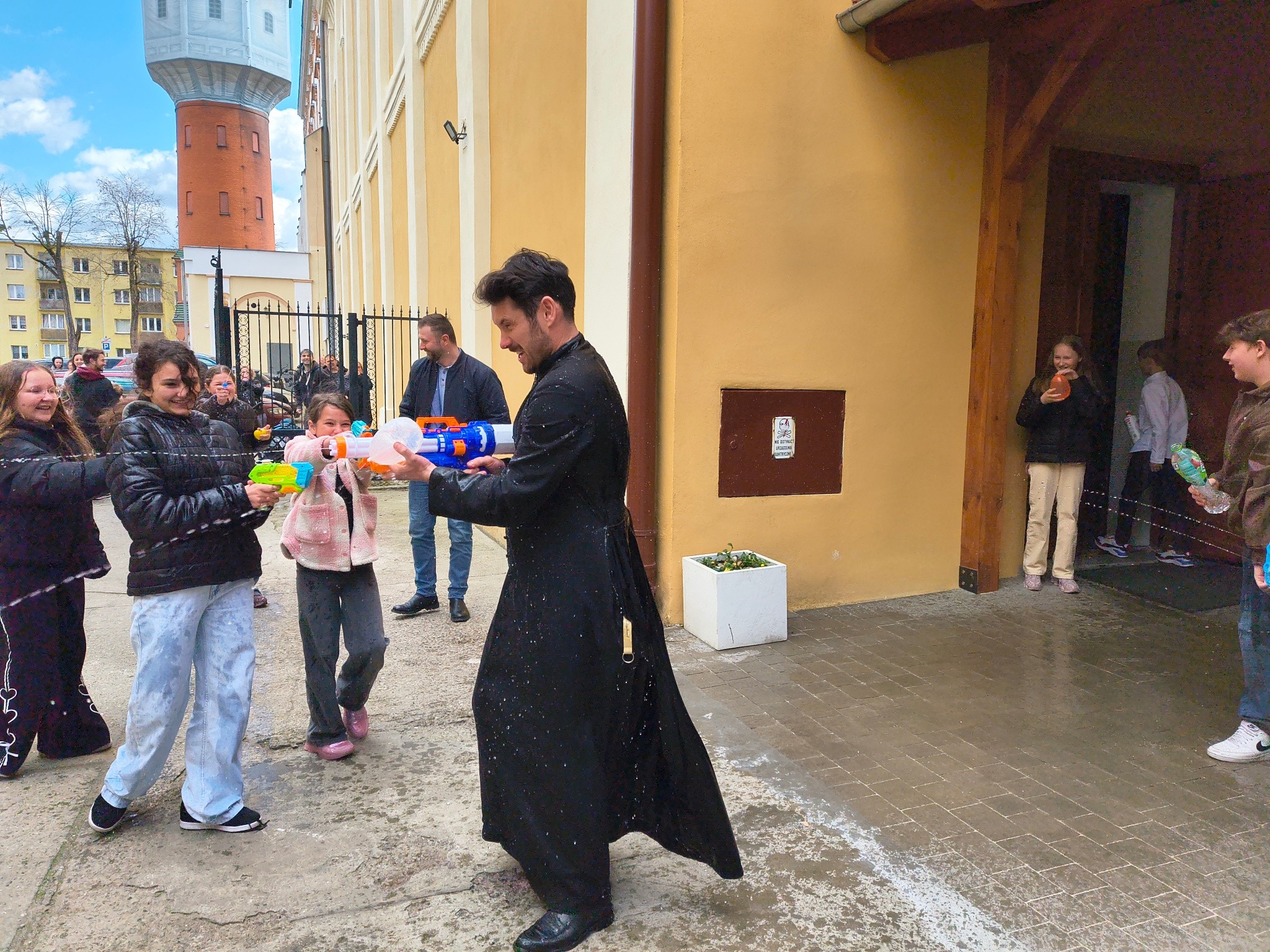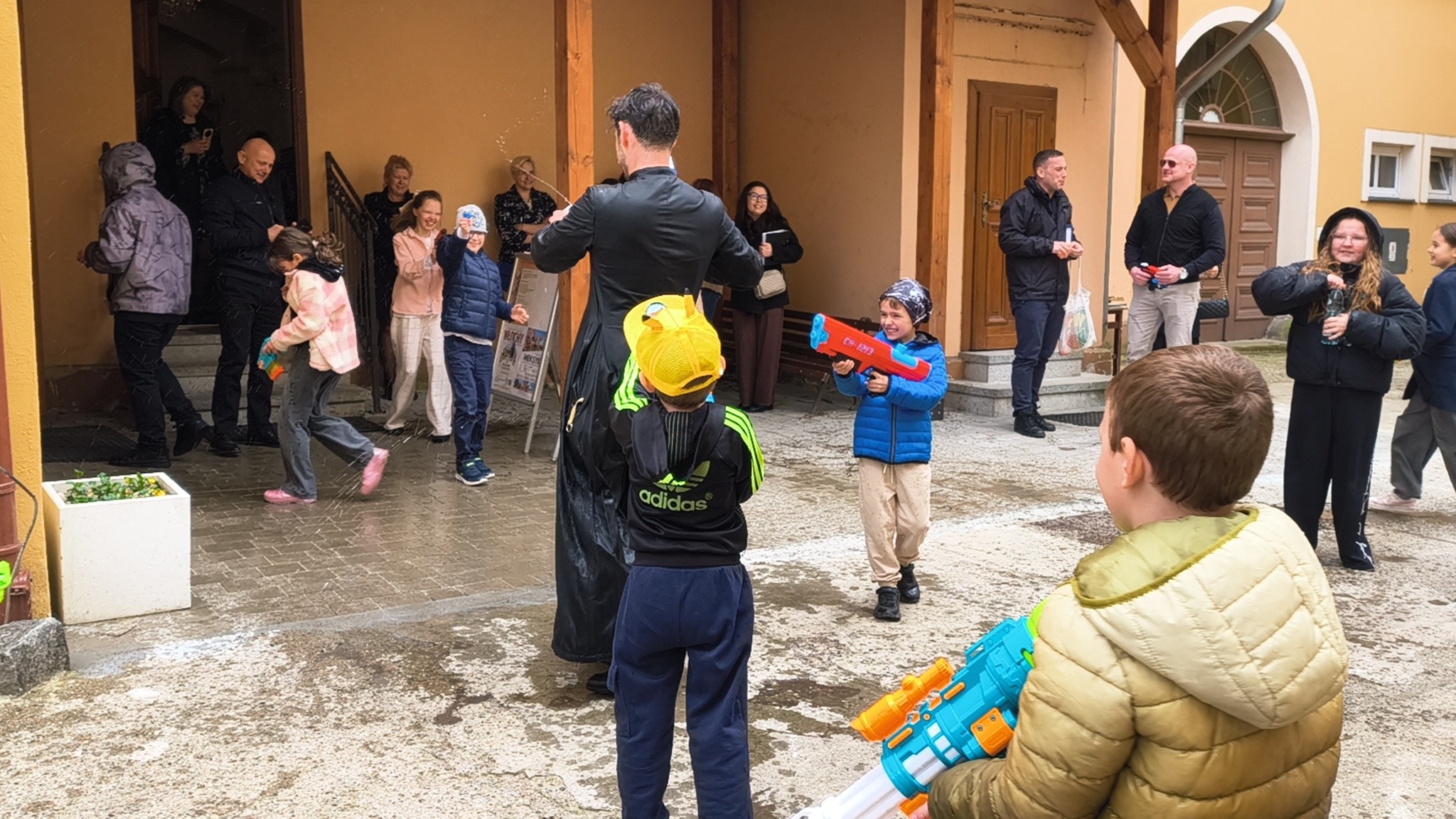 - Kto powiedział, że schola tylko śpiewa? - relacjonują. - Dzisiaj Nasze Nutki zamieniły nuty na pistolety na wodę! Po uroczystej Mszy Świętej podwórko parafialne zamieniło się w pole prawdziwej wodnej bitwy. Nie było taryfy ulgowej! Laliśmy się wszyscy: My – schola Apostolskie Nutki, dzielni ministranci, dzieciaki z naszej Parafii, a na pierwszej linii frontu... Ksiądz Jakub! (Mamy dowody, że był najbardziej mokry!). Dziękujemy wszystkim za wspólną zabawę i mnóstwo śmiechu. To był prawdziwie radosny Śmigus-dyngus! A jak tam u Was? Sucha nitka na kimś została?