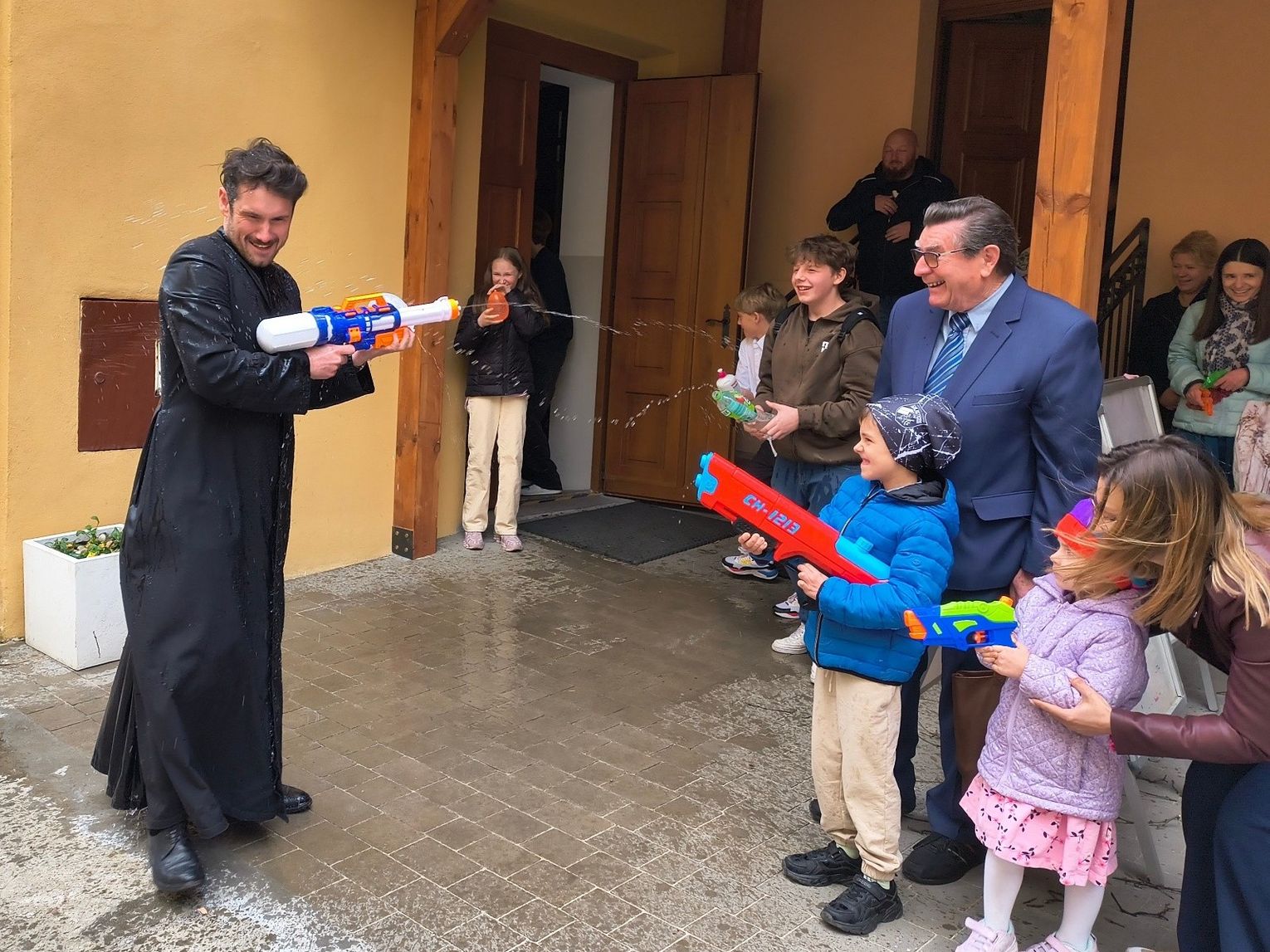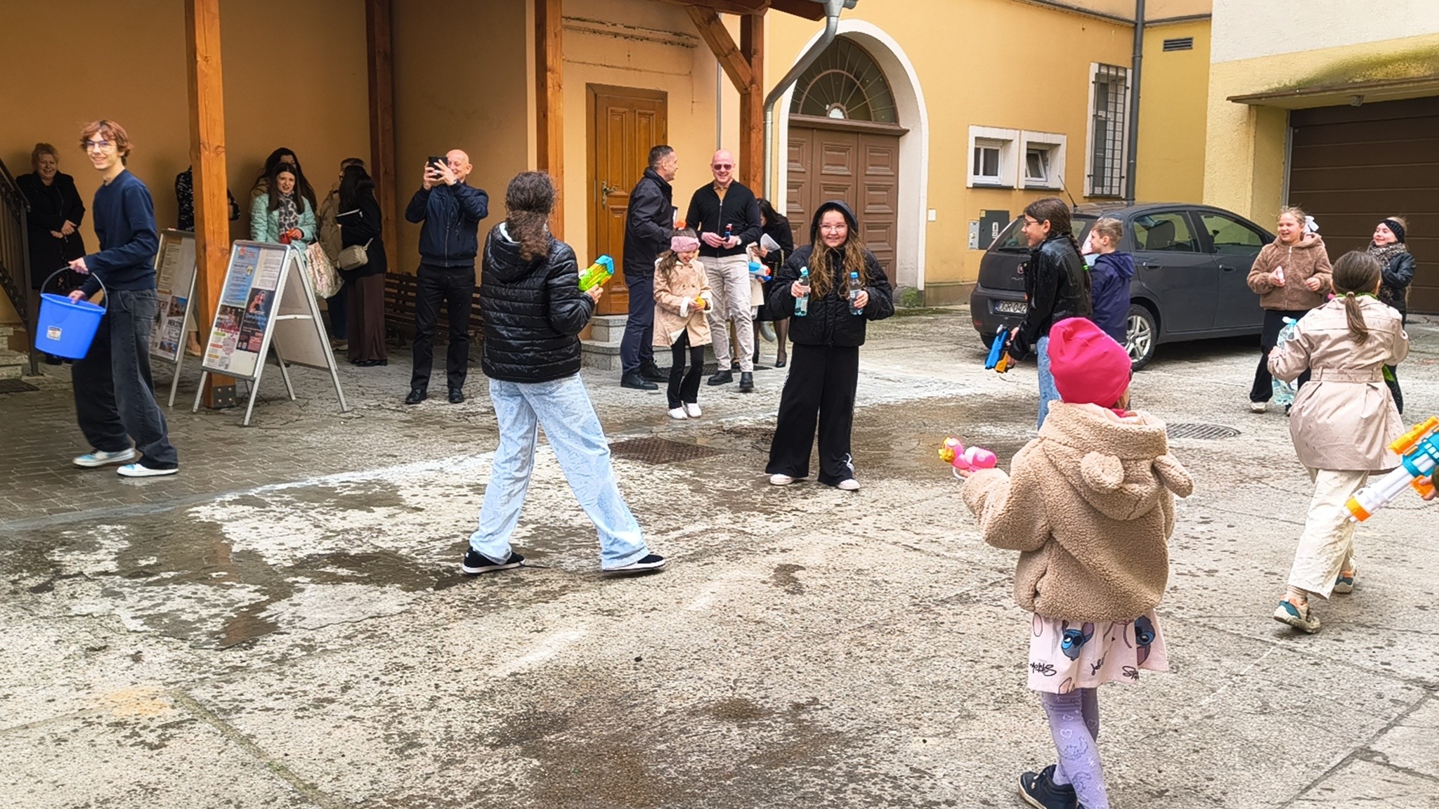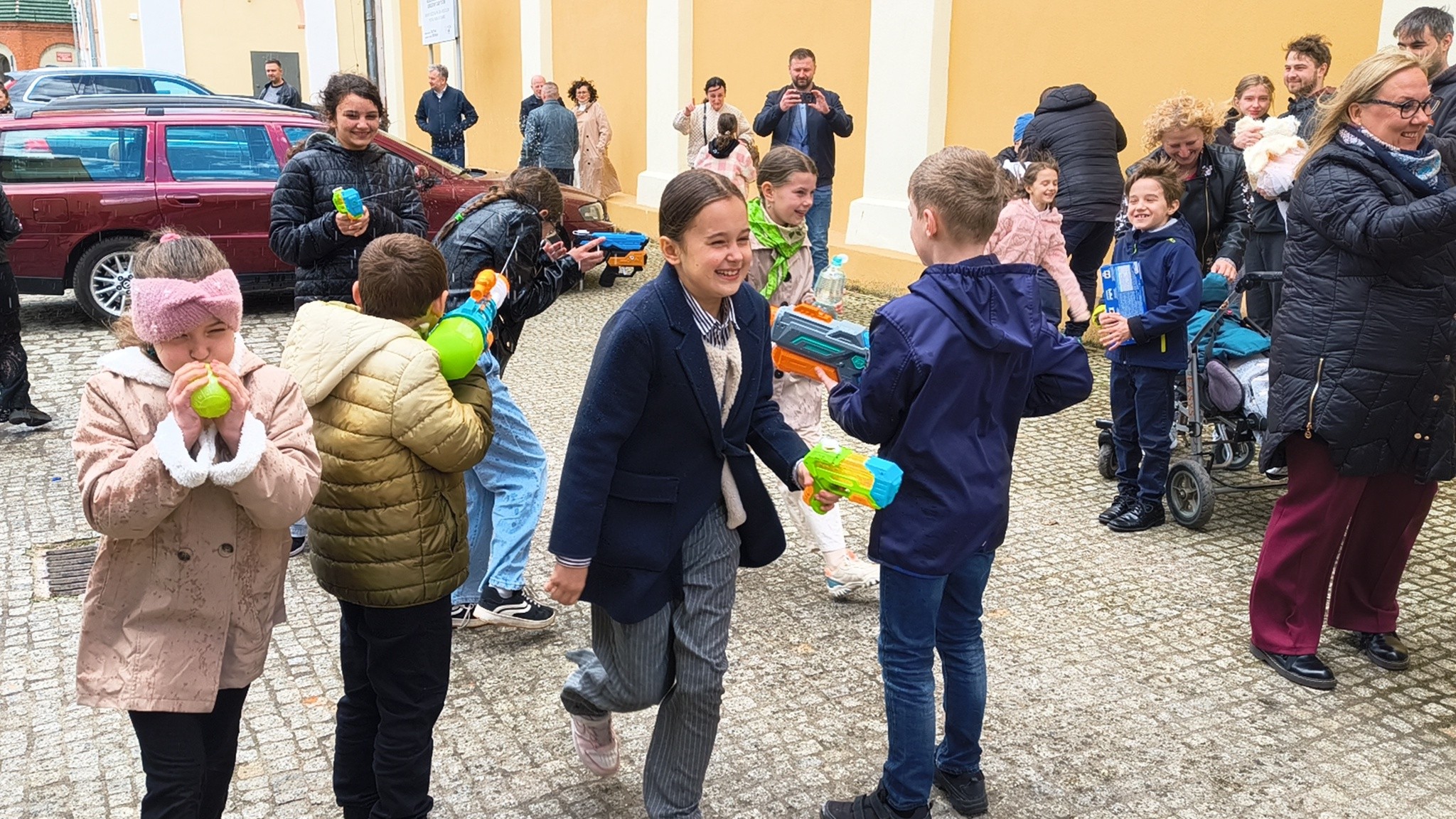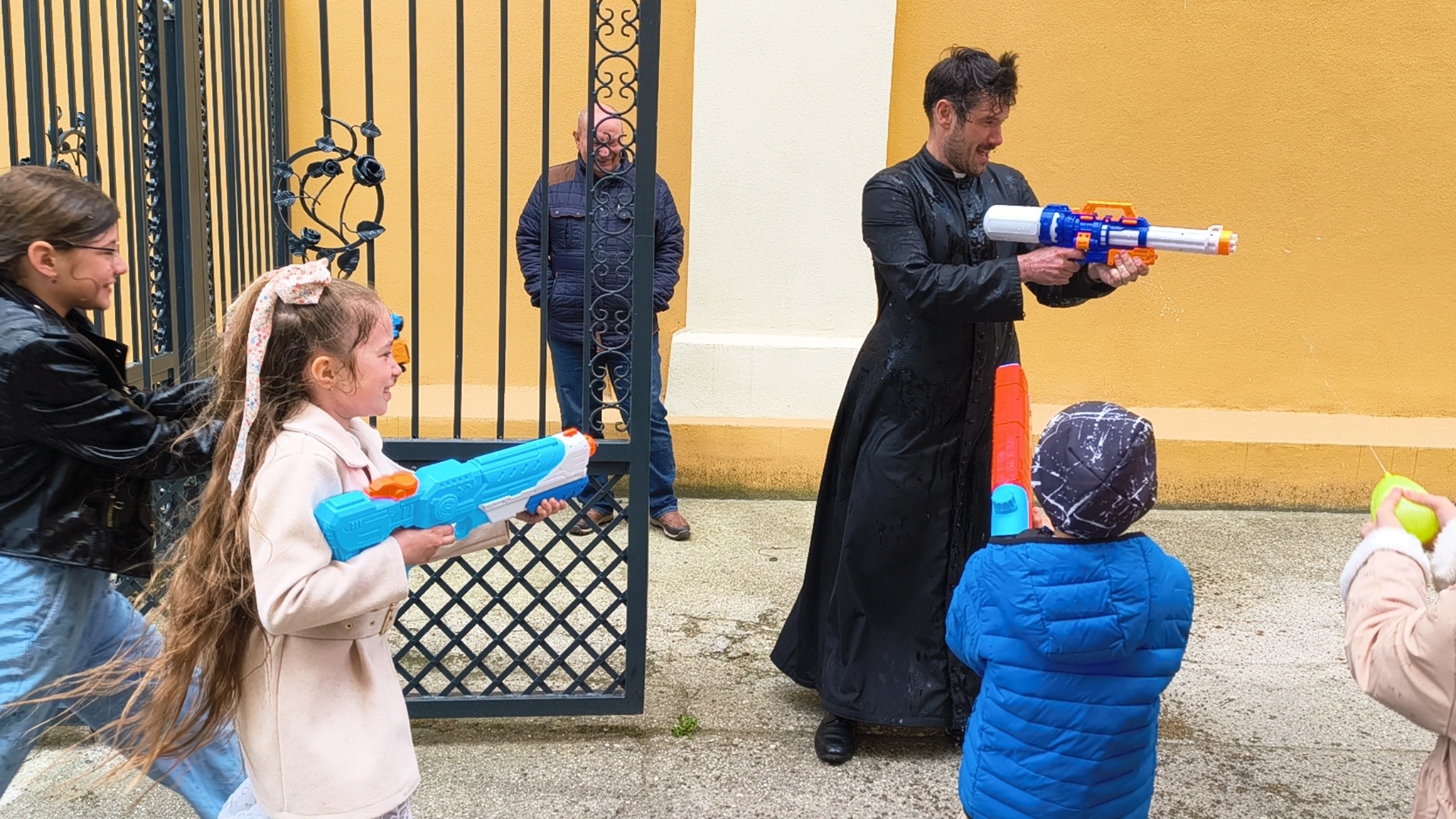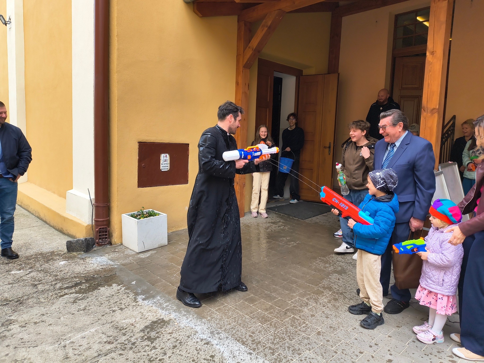 - Kto powiedział, że schola tylko śpiewa? - relacjonują. - Dzisiaj Nasze Nutki zamieniły nuty na pistolety na wodę! Po uroczystej Mszy Świętej podwórko parafialne zamieniło się w pole prawdziwej wodnej bitwy. Nie było taryfy ulgowej! Laliśmy się wszyscy: My – schola Apostolskie Nutki, dzielni ministranci, dzieciaki z naszej Parafii, a na pierwszej linii frontu... Ksiądz Jakub! (Mamy dowody, że był najbardziej mokry!). Dziękujemy wszystkim za wspólną zabawę i mnóstwo śmiechu. To był prawdziwie radosny Śmigus-dyngus! A jak tam u Was? Sucha nitka na kimś została?