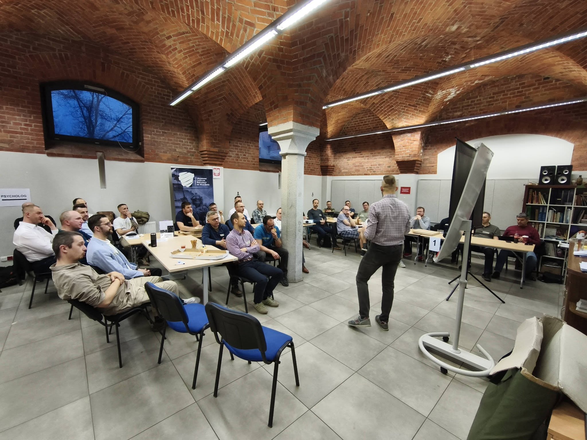 Piotr Skała Gajda zgłębiał temat storytellingu, jako metody opowiadania, która pociąga dziecko, a przez to buduje i wzmacnia więź między tatą, a dzieckiem. Ponad 30 facetów w środku tygodnia, późnym wieczorem, pofatygowało się na spotkanie, gdzie posłuchali o opowiadaniu historii.