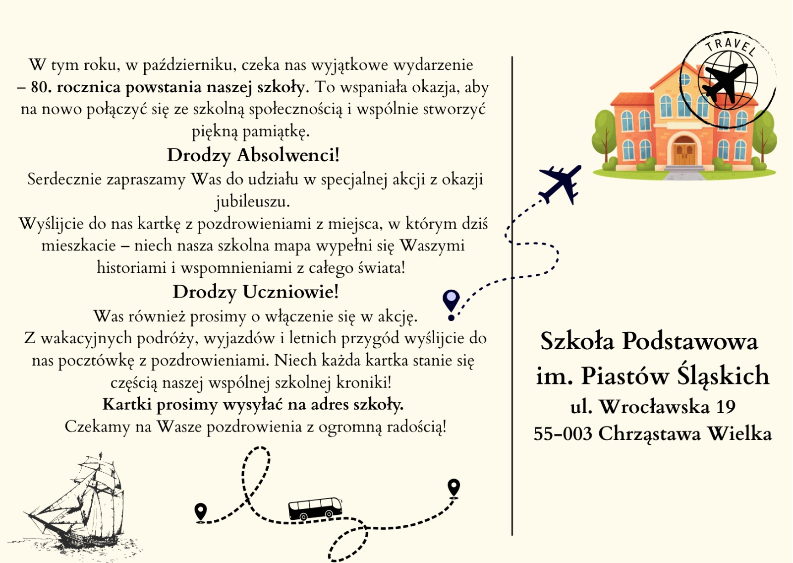 Proszą absolwentów, aby wysyłali kartki z pozdrowieniami do swojej starej szkoły