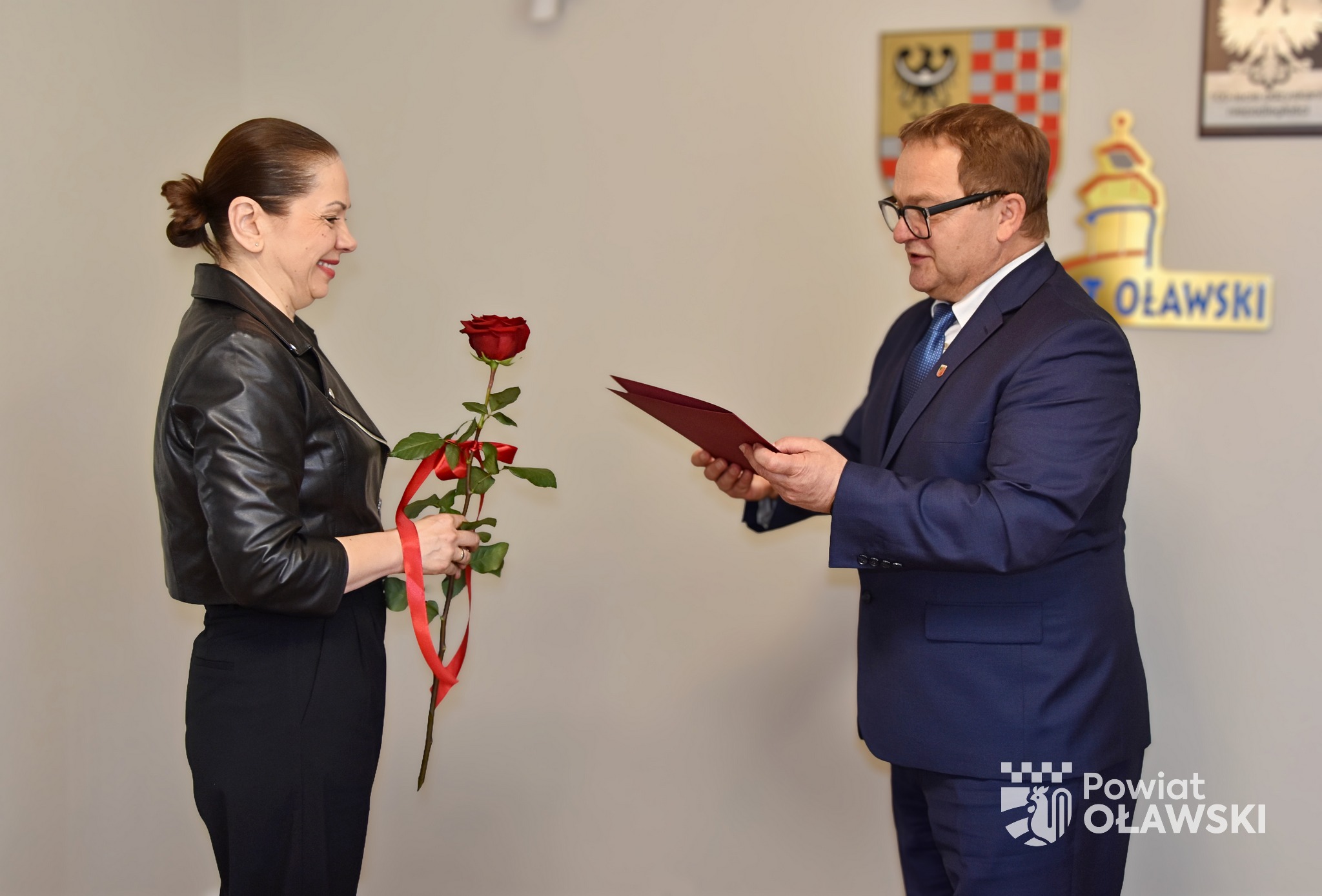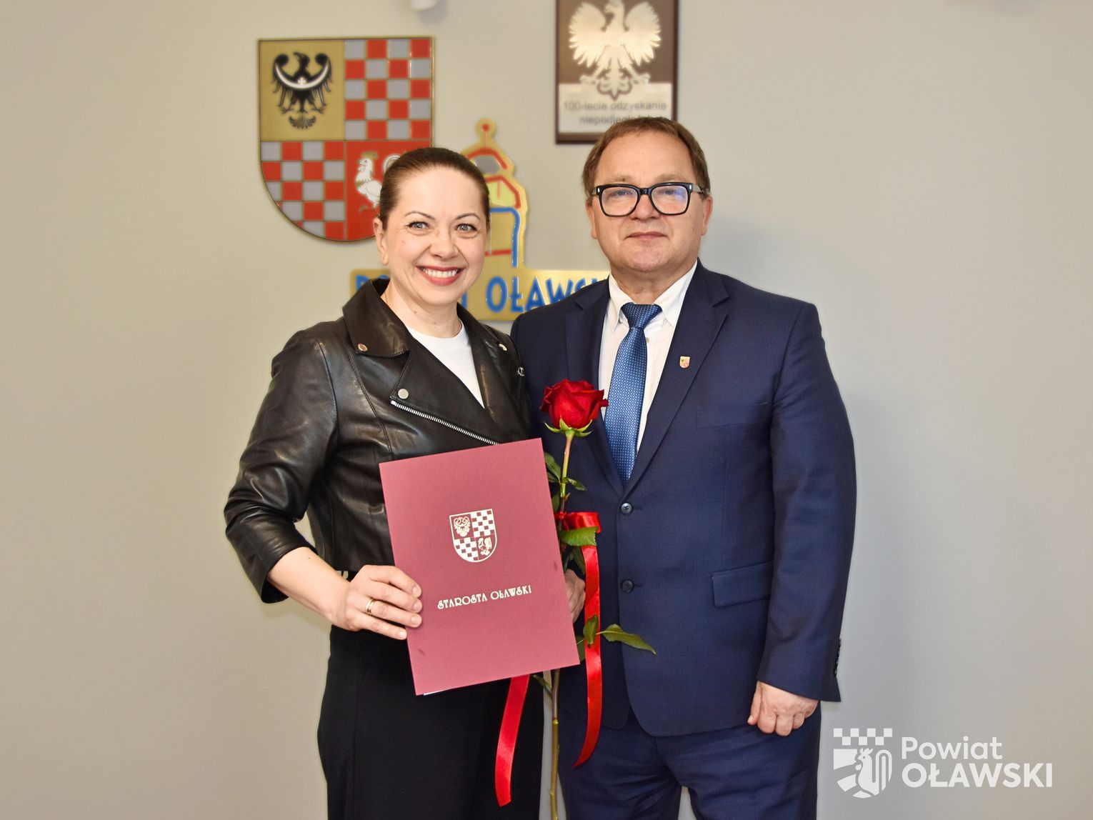 Anna Leśniewicz – nauczycielka Liceum Ogólnokształcącego Nr I im. Jana III Sobieskiego w Oławie – otrzymała z rąk starosty oławskiego Marka Szponara akt nadania stopnia nauczyciela mianowanego. Pani Anna jest także absolwentką tego oławskiego liceum