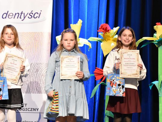 Najlepsi, z podziałem na trzy kategorie wiekowe, otrzymali nagrody. I tak wśród najmłodszych - klasy I-IV - wygrała Ida Kłeczek z kl. 4 SP nr 8 w Oławie, drugie miejsce zajęła - Emilia Wójcik z kl. 2, SP w Wierzbnie, a trzecie - Maria Pawłowska z klasy 4, SP nr 1 w Oławie.