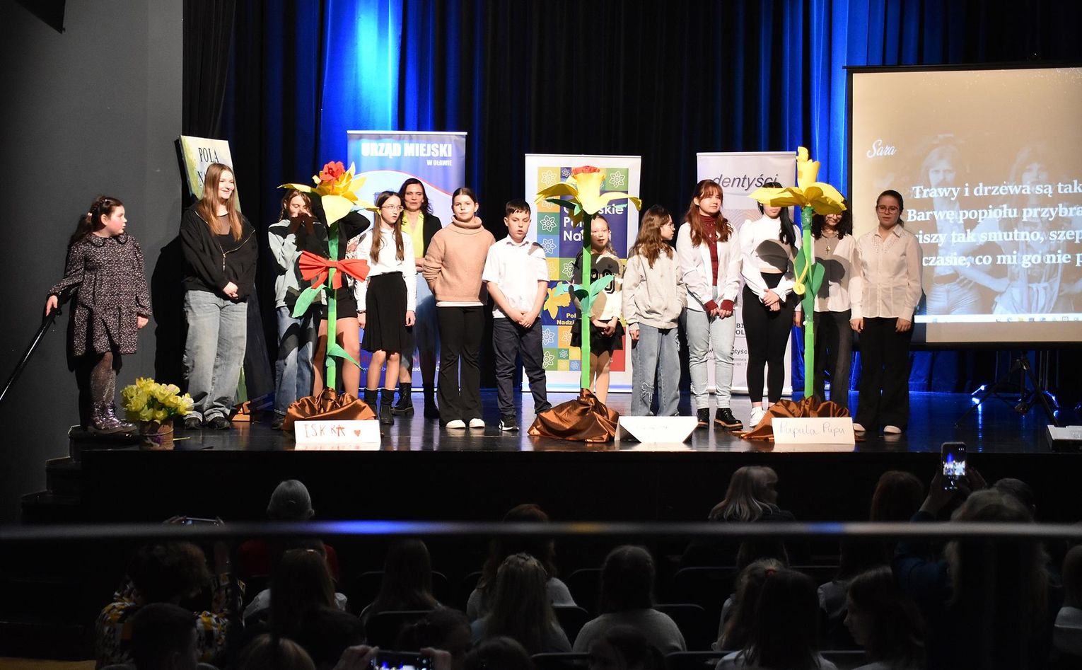 W konkursie nie wzięła, bo nie mogła wziąć udziału - chociażby ze względu na duży rozmiar - wyjątkowa praca, obraz wykonany przez grupę artystów działających przy oławskim Uniwersytecie Trzeciego Wieku pod kierunkiem Bożeny Potoczny. Na prośbę organizatorów akcji artyści namalowali dedykowaną akcji "ściankę" pełną żonkili. Nagrody nie otrzymali, ale gorąco im publicznie podziękowano, a zebrana publiczność nagrodziła brawami.