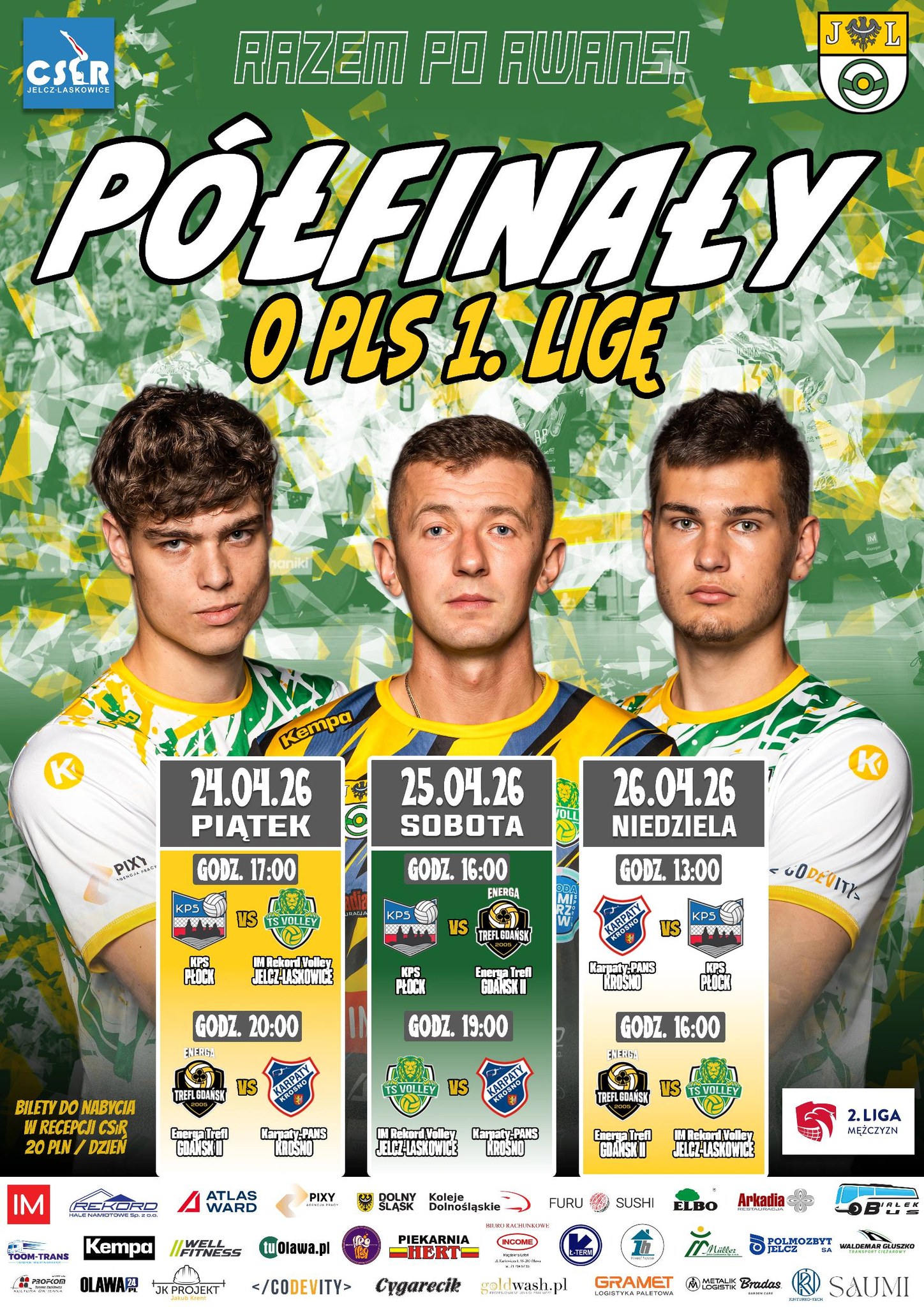 Turniej półfinałowy zostanie rozegrany w Centrum Sportu i Rekreacji w dniach 24-26 kwietnia. Bilety można kupować w recepcji Centrum Sportu i Rekreacji. Cena - 20 zł za jeden dzień (dwa mecze). Szczegóły na plakacie niżej.