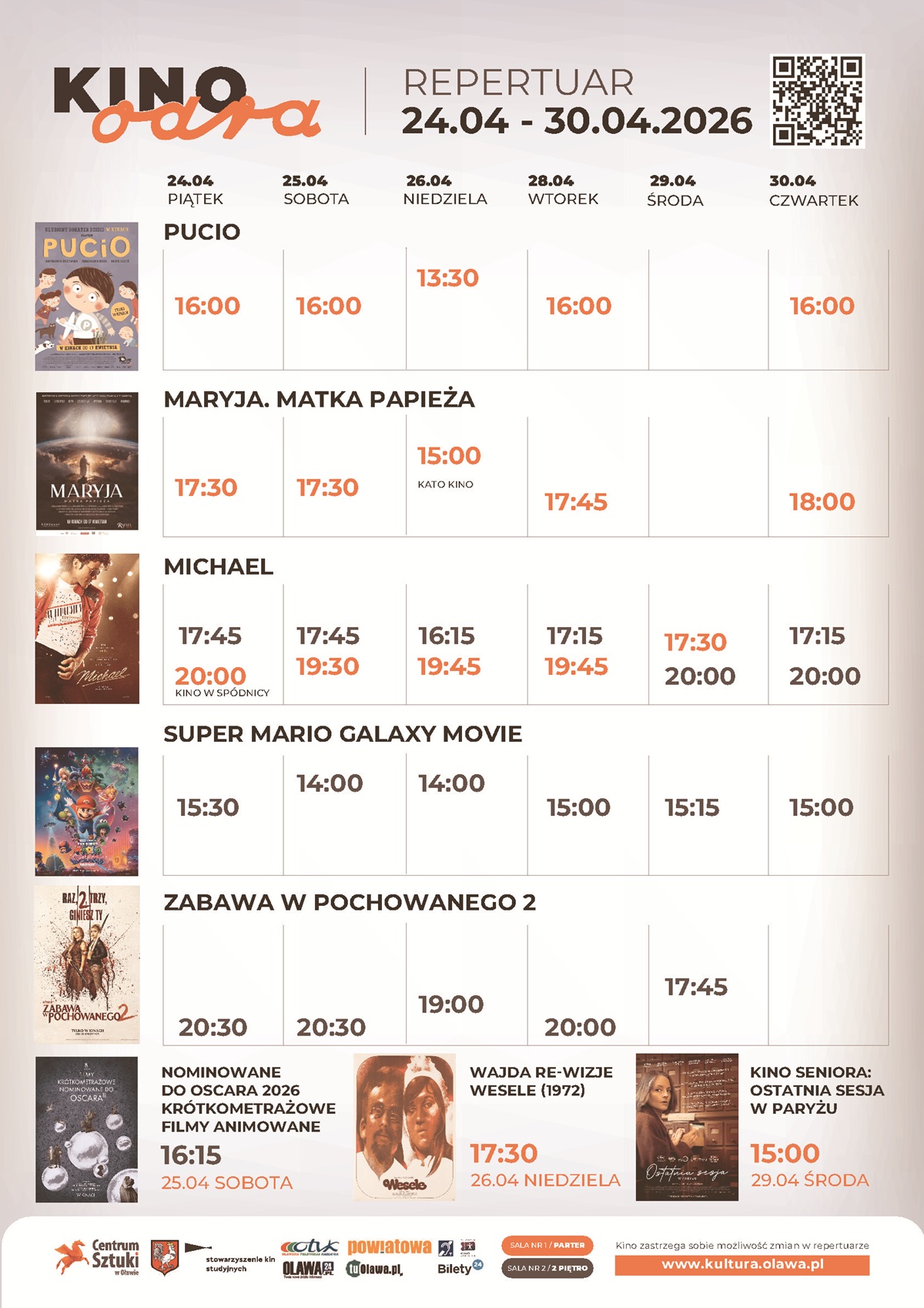 Repertuar od 24 do 30 kwietnia 2026 r. Biograficzny film pt."Michael" (reżyseria Antoine Fuqua) to jedna z propozycji ODRY na najbliższy tydzień.