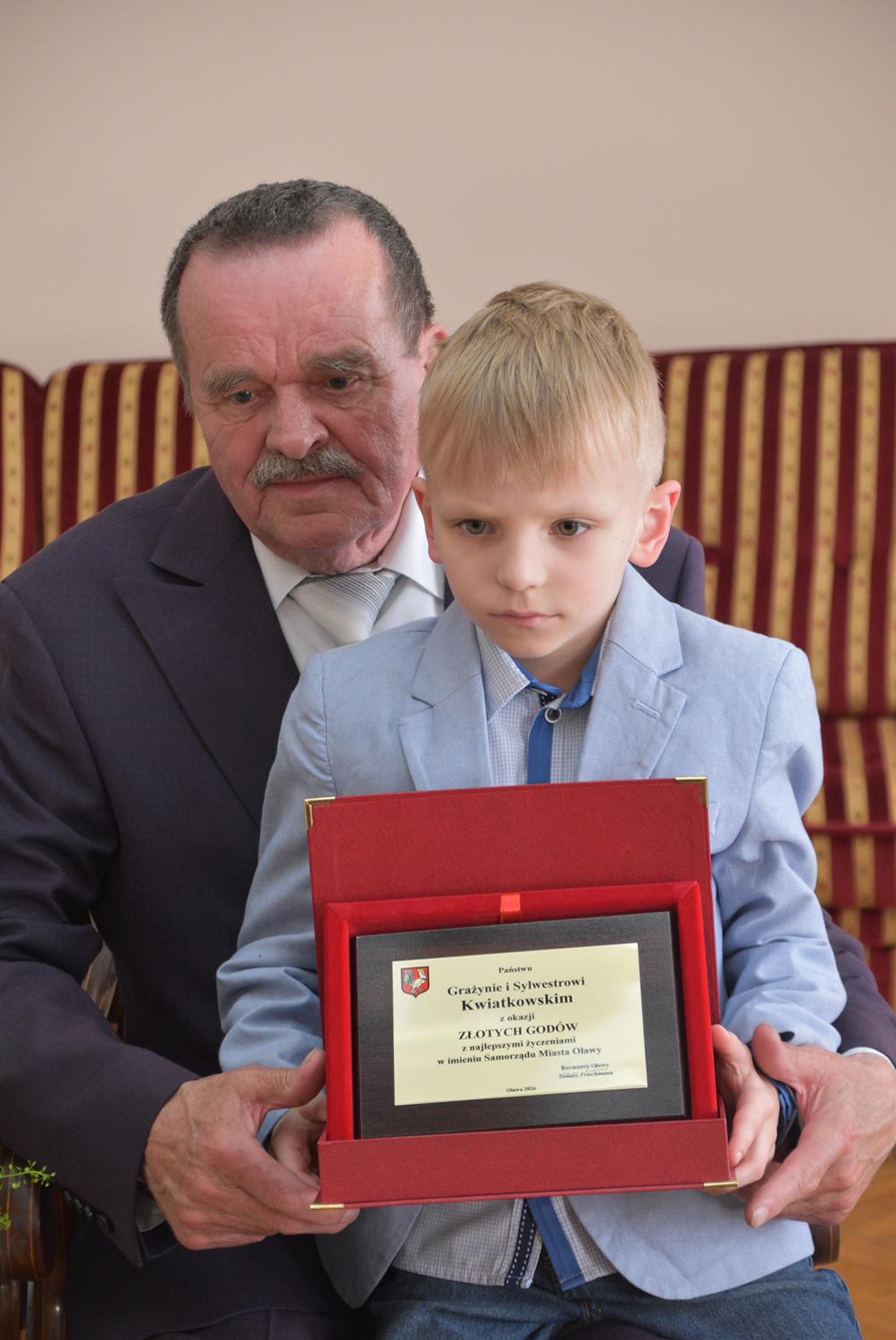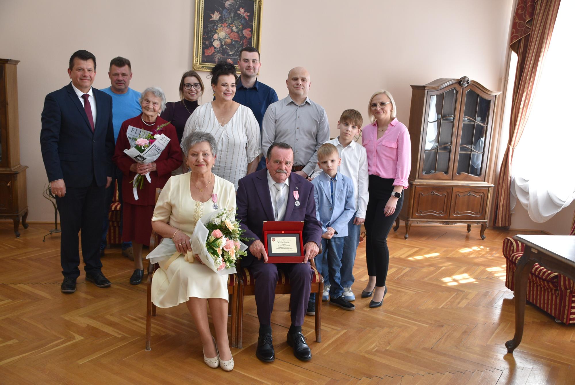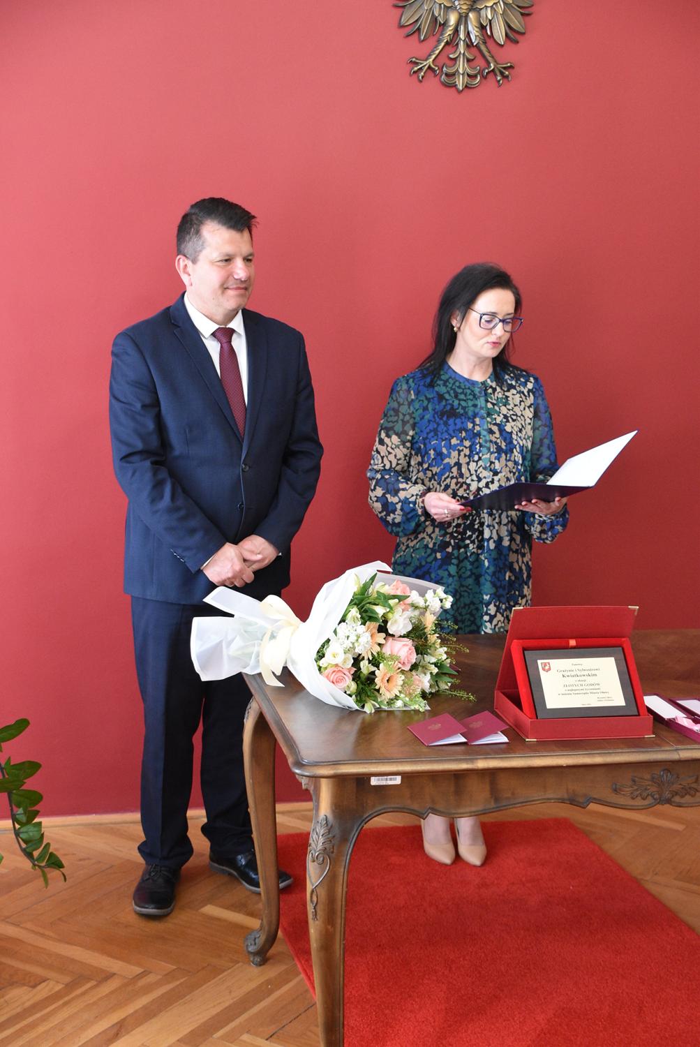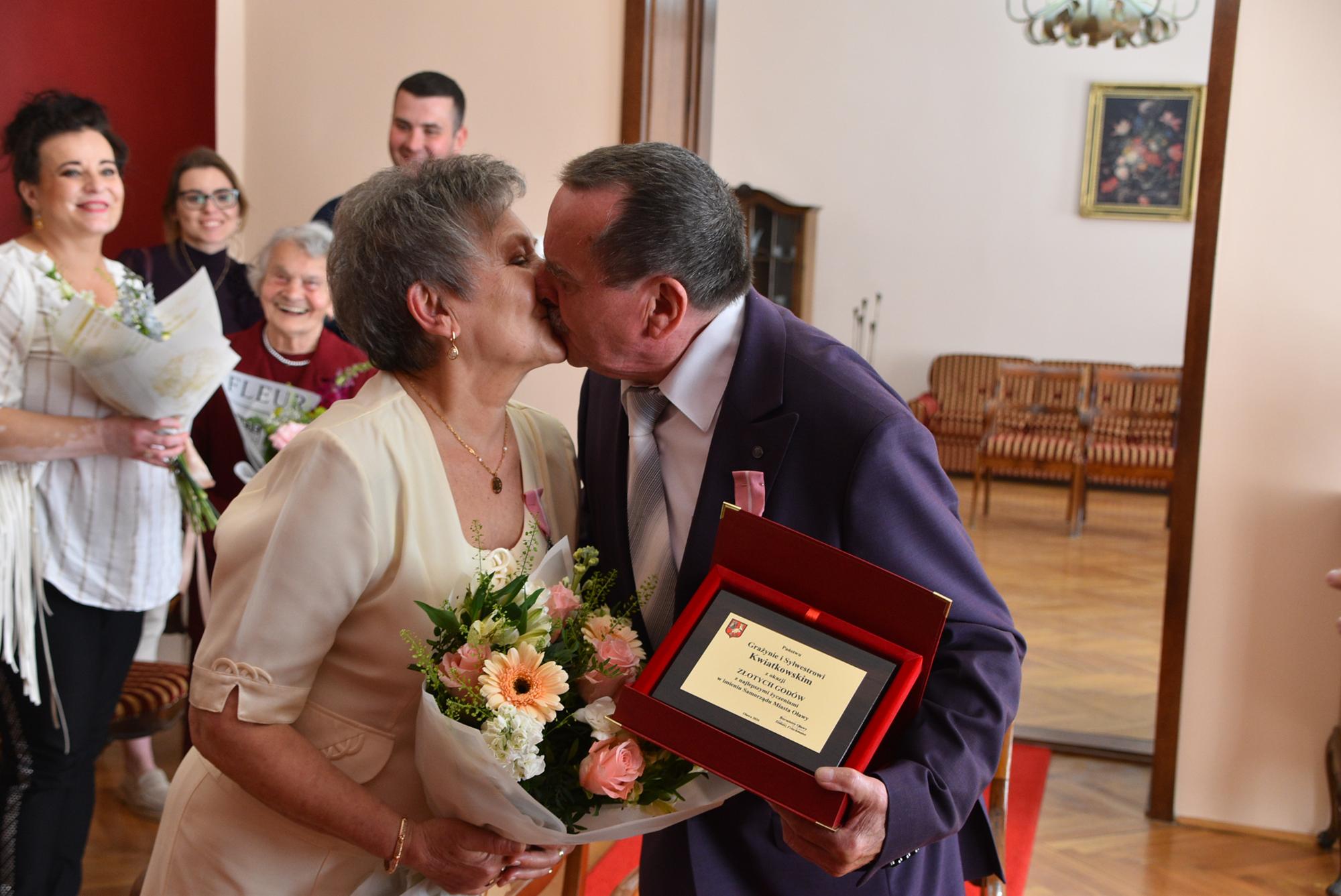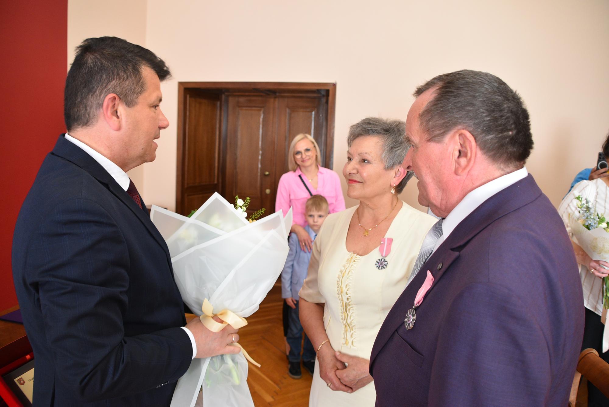 Podczas uroczystości w USC burmistrz Oławy Tomasz Frischmann przekazał Jubilatom medale przyznawane przez Prezydenta RP oraz pamiątkowy grawerton i bukiet kwiatów - w imieniu wszystkich mieszańców Oławy.