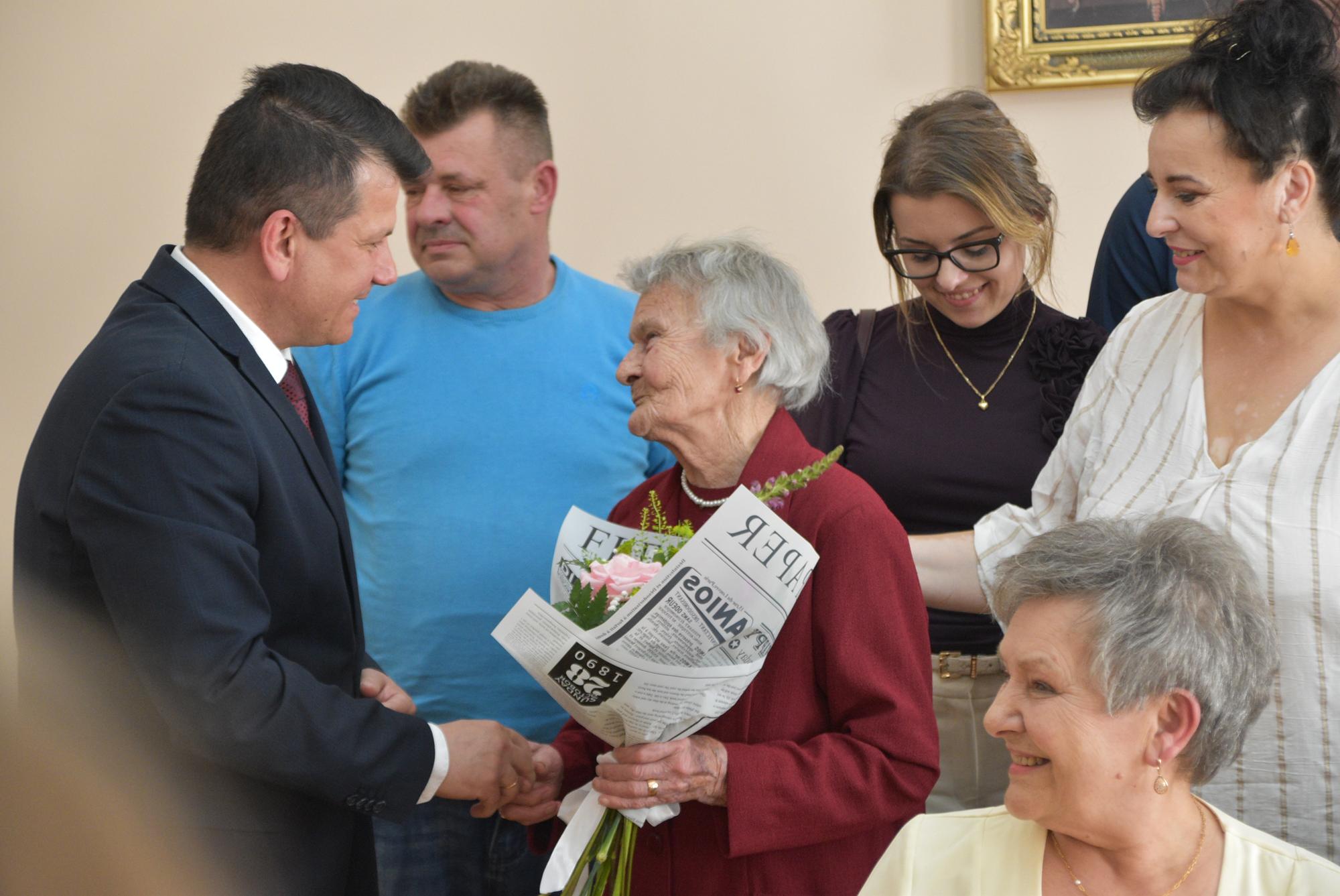 Podczas uroczystości obecna była mama pani Grażyny - Regina - która w maju, w Dniu Matki skończy 97 lat! Wszyscy obecni podkreślali, że to niecodzienne wydarzenie, aby w świętowaniu złotych godów w Urzędzie Stanu Cywilnego osobiście uczestniczyła mama Jubilatki. Pani Regino - 200 lat życzymy!