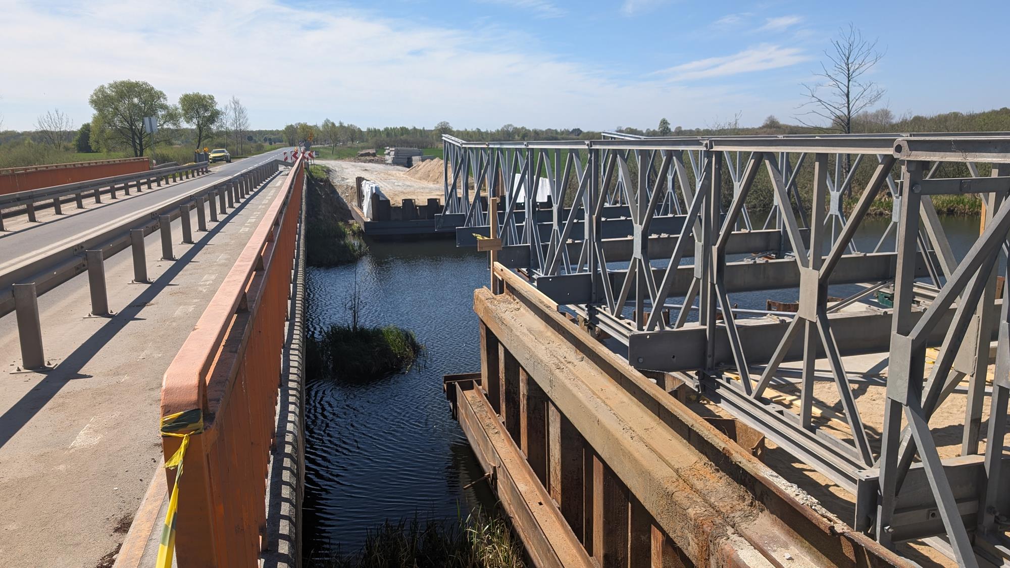 Dwa mosty buduje jedna firma, a dwa kolejne inna. Co ciekawe, obie firmy budują różnymi sposobami. W jednym przypadku istniejący most jest w połowie burzony i odtwarzany, a drogą częścią wciąż można jeździć. W drugim przypadku budowana jest przeprawa tymczasowa przez wodę i tamtędy pójdzie ruch kołowy (ograniczenie do 20 ton), a wtedy stary most będzie demontowany i w jego miejsce stawiany nowy.