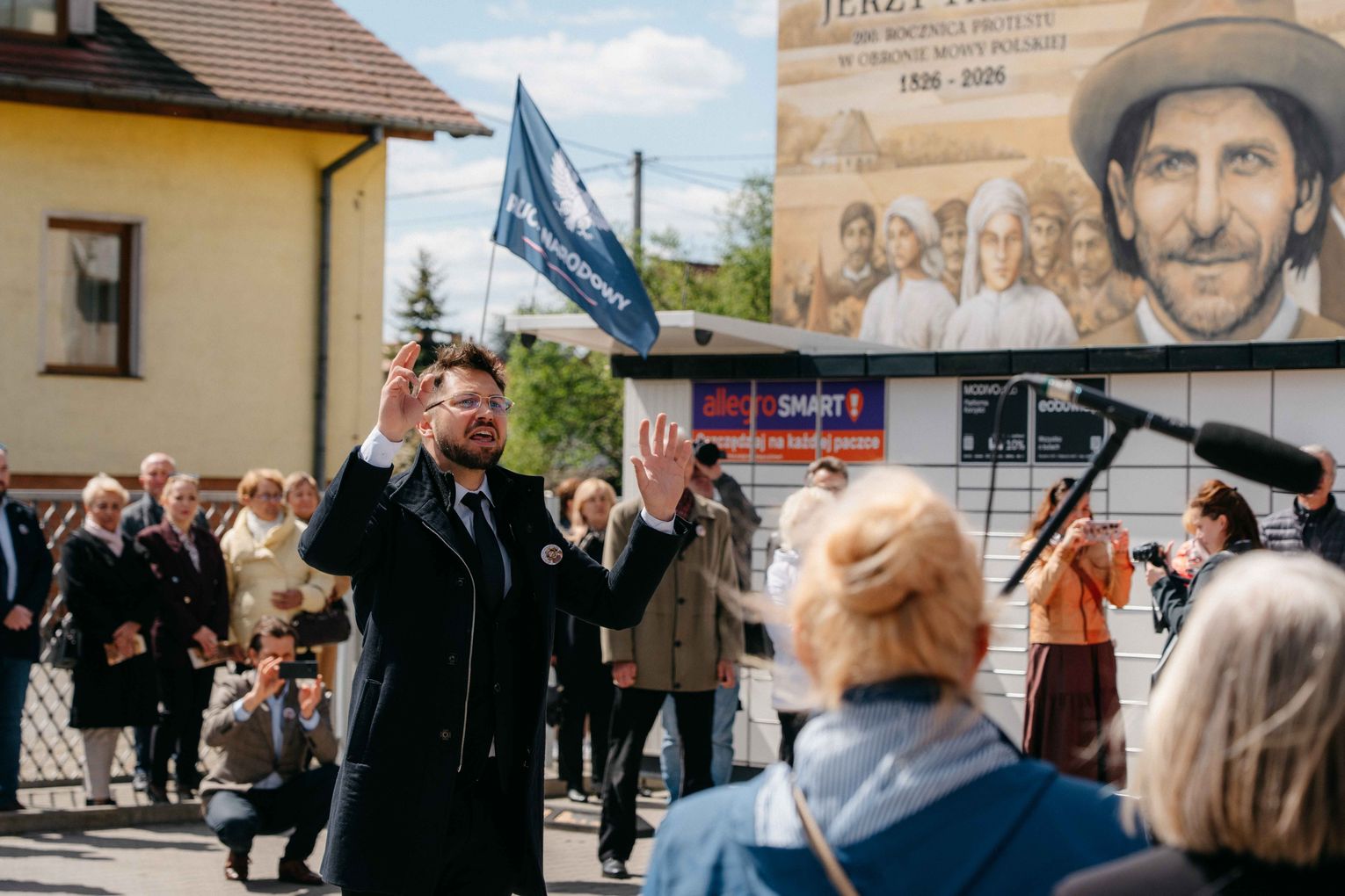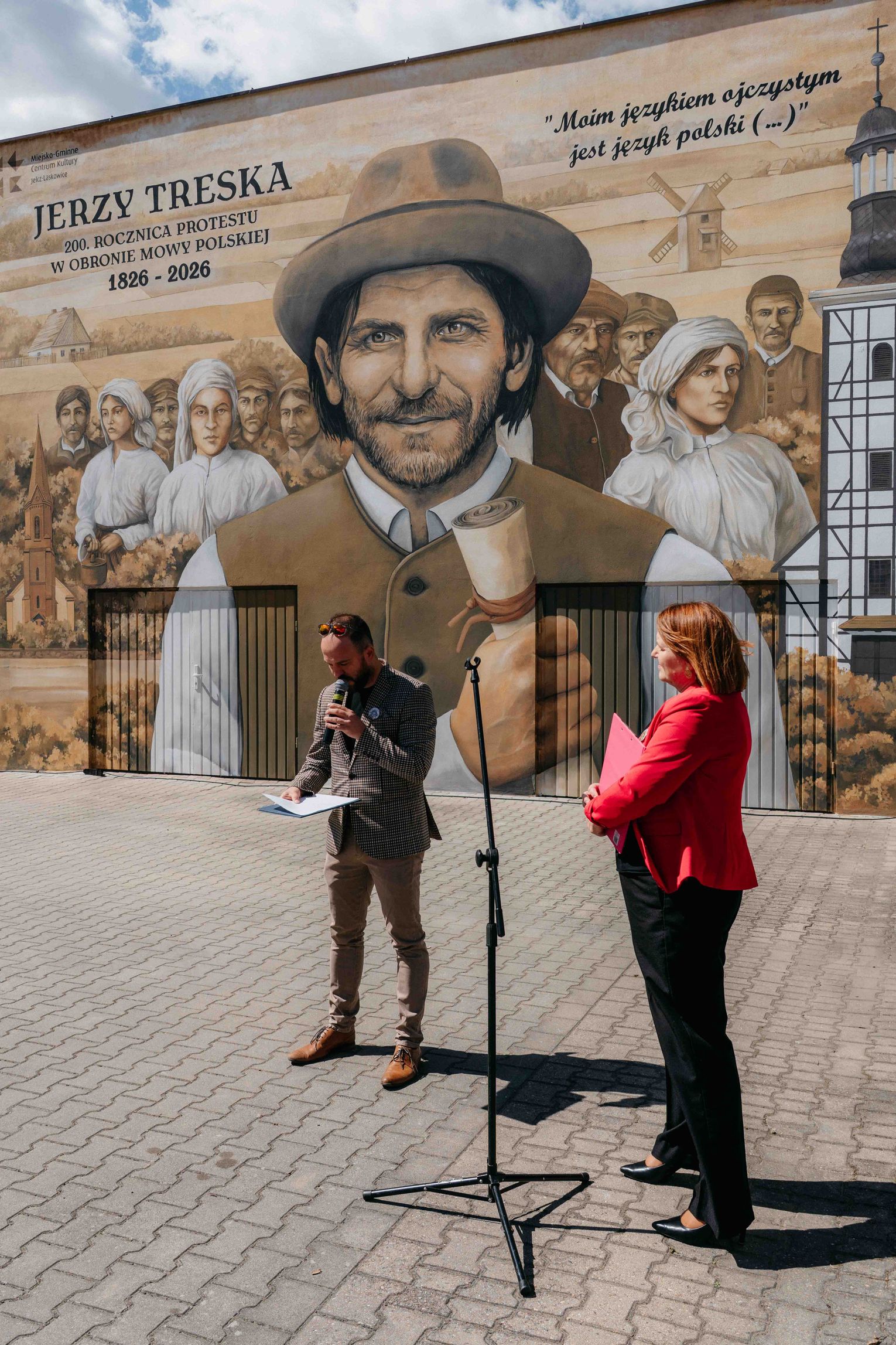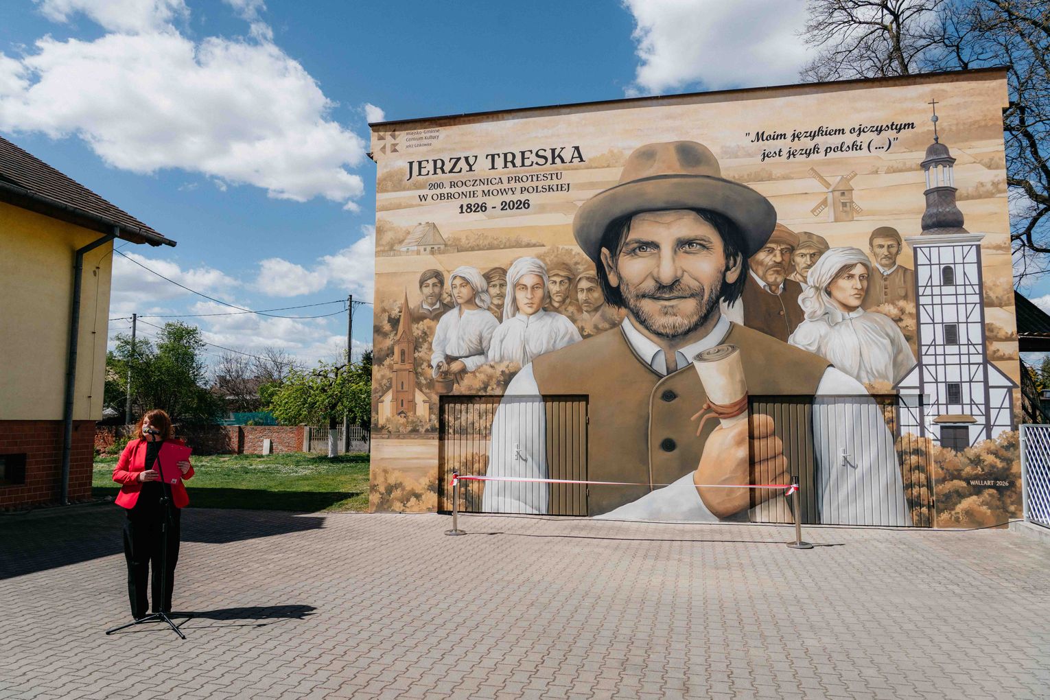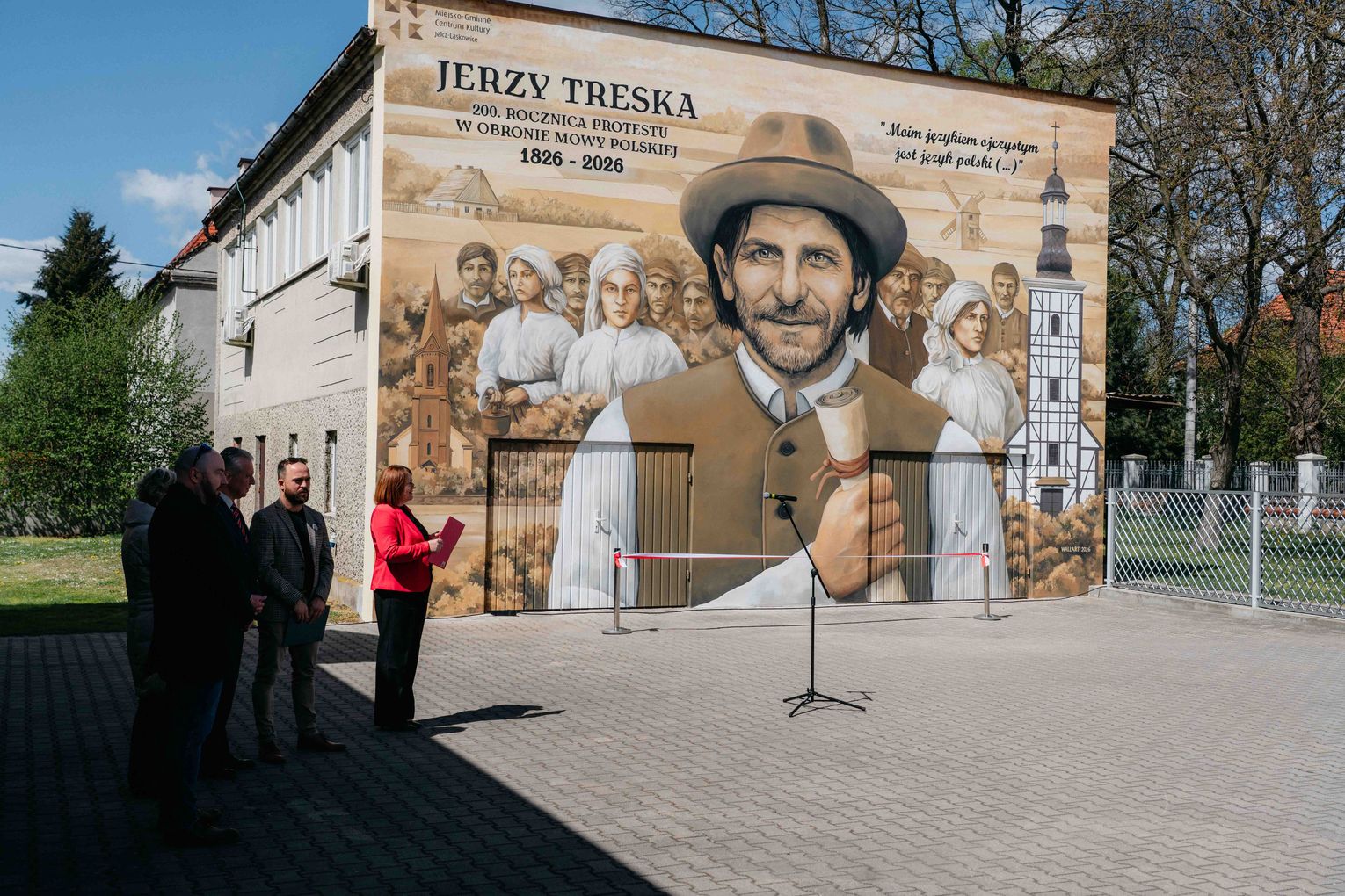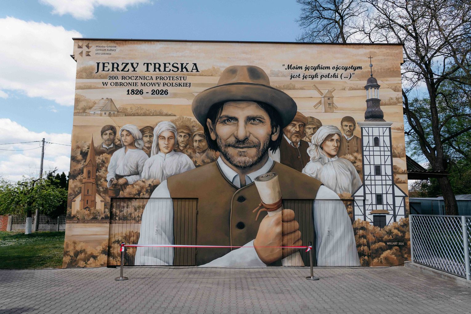 Mural można zobaczyć nieopodal kościoła pw. Stanisława Biskupa i Męczennika przy ul. Witosa w Jelczu-Laskowicach. W 2026 roku przypada 200. rocznica wydarzeń, które na trwale zapisały się w historii Jelcza-Laskowic i okolic. W 1826 roku mieszkańcy Laskowic, z Jerzym Treską na czele wystąpili w obronie języka polskiego, sprzeciwiając się dalszemu ograniczaniu nabożeństw w ojczystej mowie. Był to ważny i odważny głos lokalnej społeczności, która nie godziła się na utratę własnej tożsamości, tradycji i prawa do religijnej wspólnoty wyrażanej po polsku.