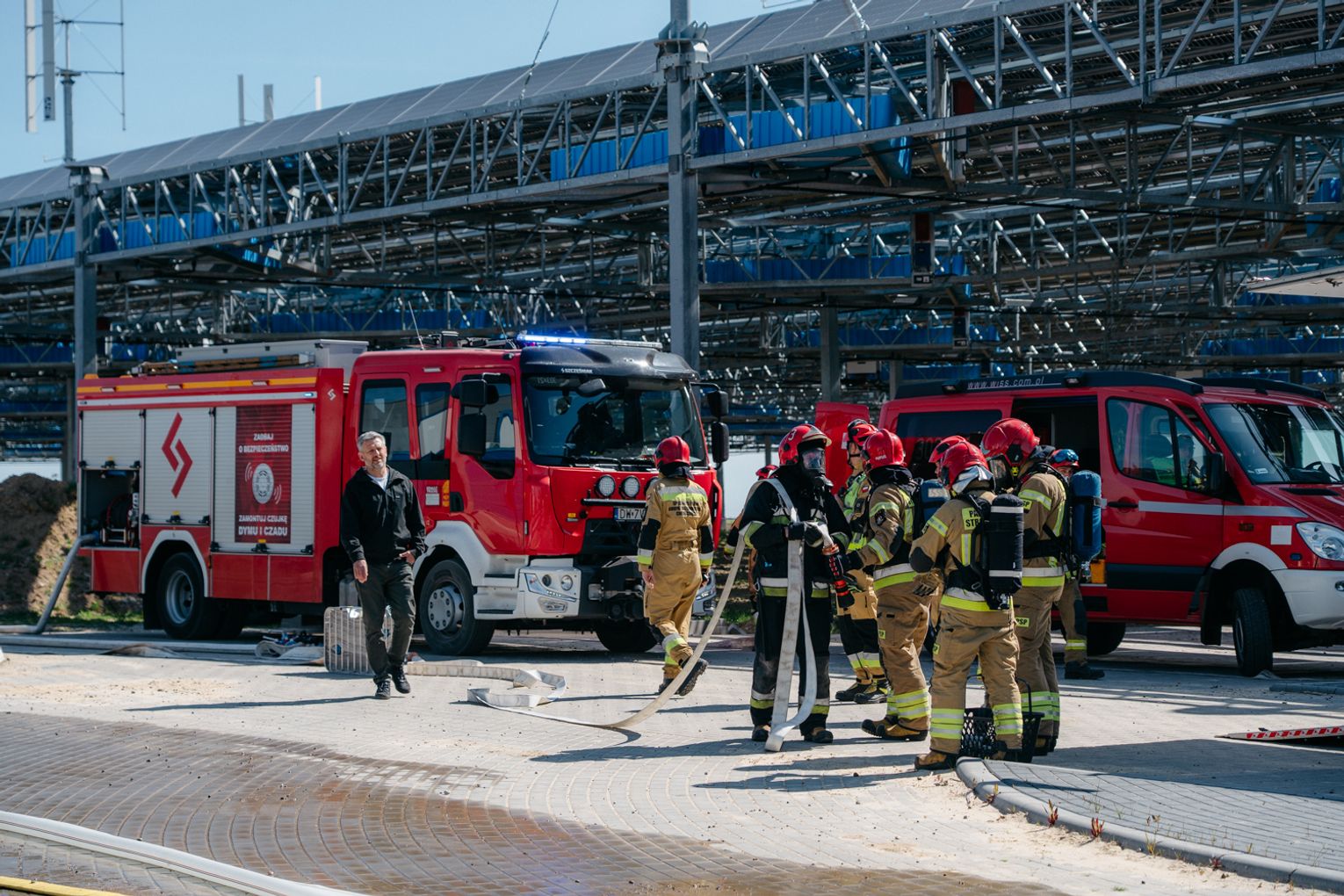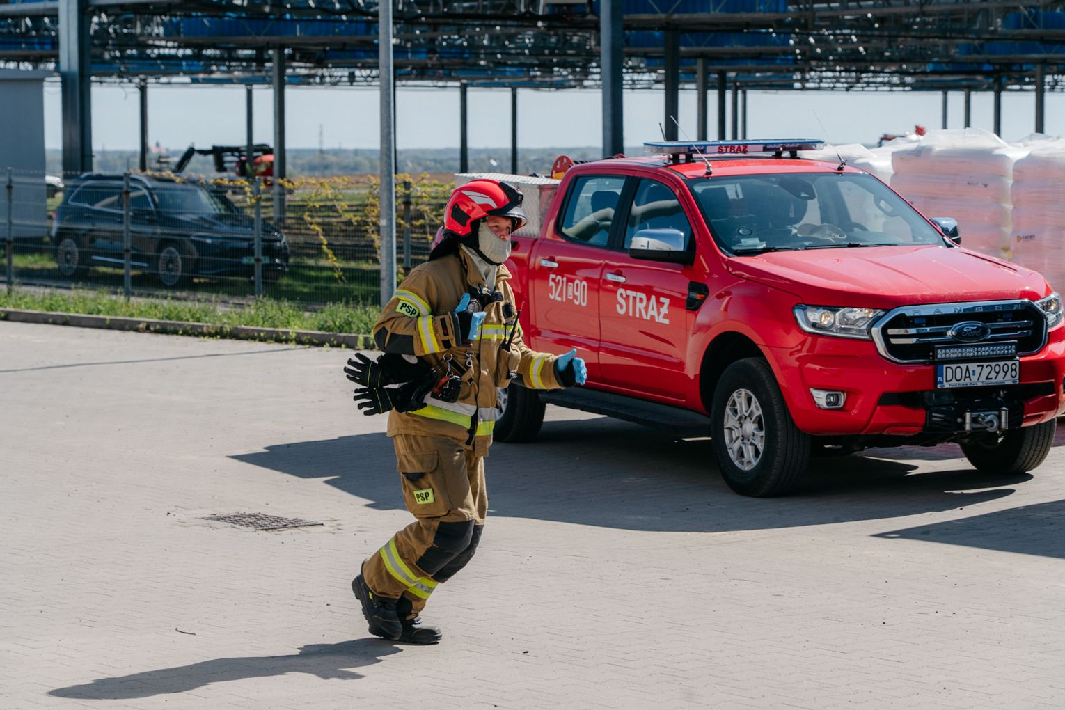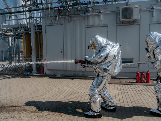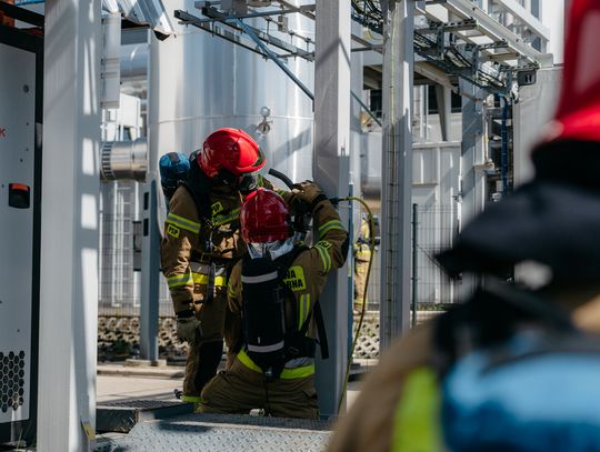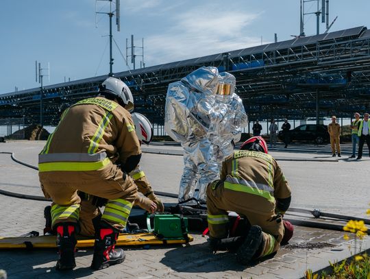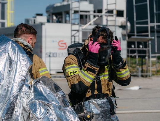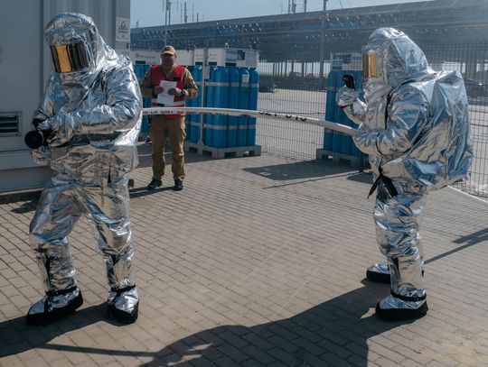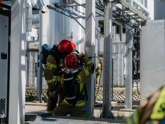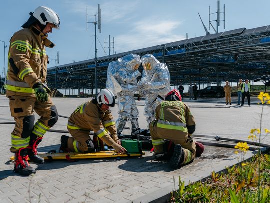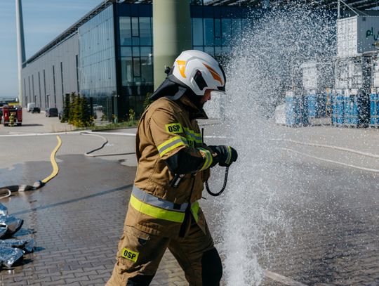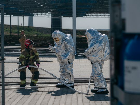 - Witam serdecznie na terenie gminy Oława, w Gaju Oławskim, w zakładzie Promet Plast. Korzystamy z gościnności właścicieli, aby przeprowadzić tegoroczne ćwiczenia powiatowe i sprawdzić gotowość służb ratowniczych do prowadzenia działań - mówił podczas odprawy komendant powiatowy PSP w Oławie mł. bryg. mgr inż. Bartłomiej Marcinów. - Temat przewodni to zdarzenie związane z instalacją wodorową, choć po drodze zadzieją się inne rzeczy, które finalnie doprowadzą do uszkodzenia instalacji wodorowej. Wspierają nas dziś strażacy z Oleśnicy, który pełnią funkcję rozjemców oraz funkcjonariusze z Wrocławia, którzy jako grupa chemiczna będą ćwiczyli podczas jednego z epizodów. Witam Policję, na czele z zastępcą komendanta oraz wszystkich strażaków z PSP oraz druhów-ochotników. Chociaż są to ćwiczenia, nie znamy do końca scenariusza, nie wiemy czego się spodziewać, a musimy przyjechać na miejsce i reagować. Życzę wszystkim, aby to co robimy było bezpieczne. Nie pozwólmy na to, by jakiekolwiek nieodpowiedzialne zachowanie doprowadziło do jakiegoś wypadku. Apeluję o pełne przestrzeganie zasad bezpieczeństwa, o wykonywanie poleceń dowódców, którzy są odpowiedzialni za bezpiecznie przeprowadzenie ćwiczeń. Na pewno nie wszystko się uda, a wnioski, które wypracujemy, po wszystkim wspólnie omówimy.