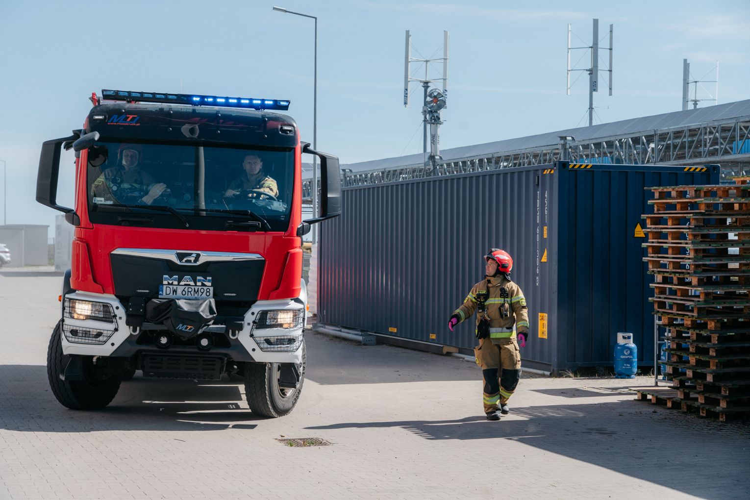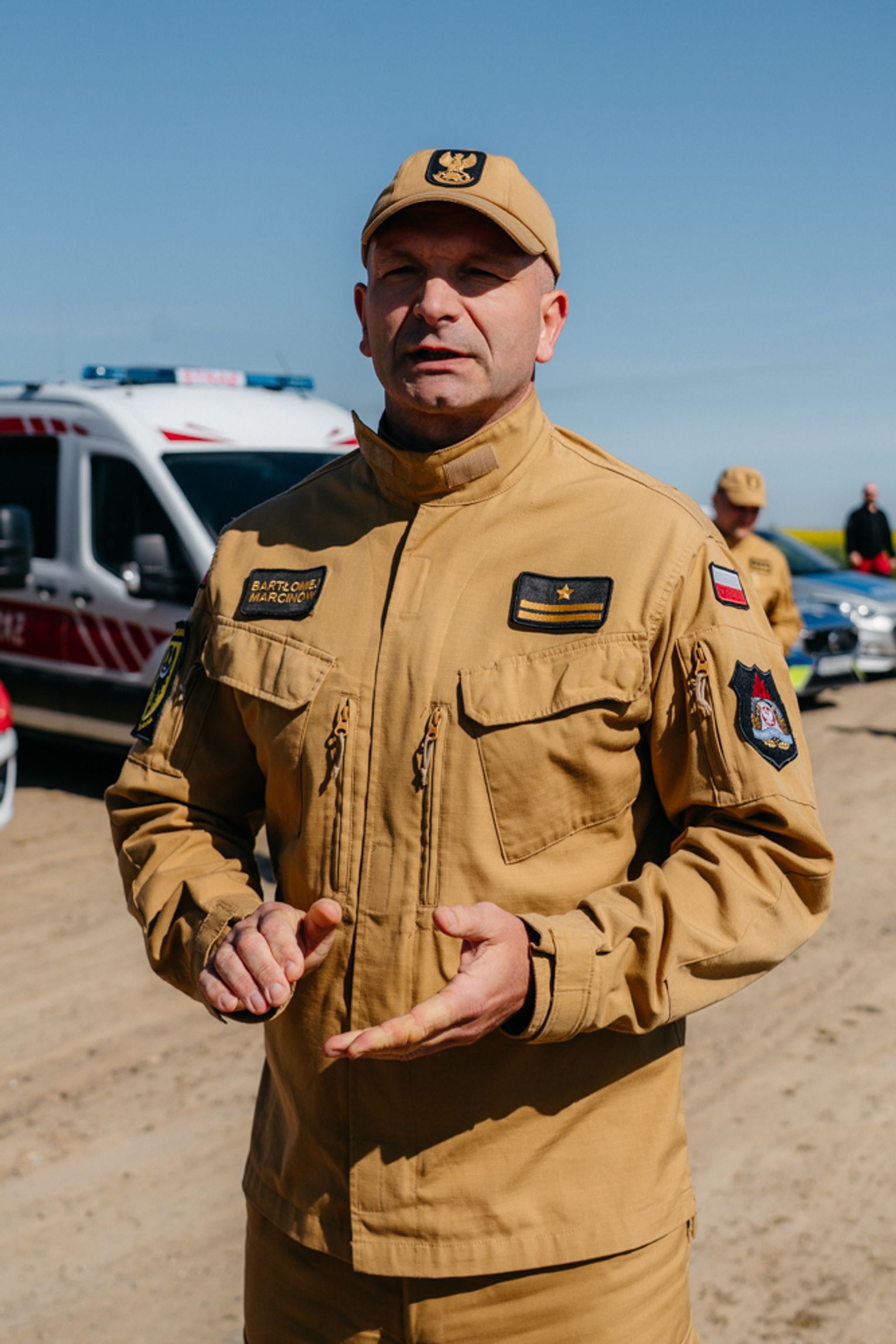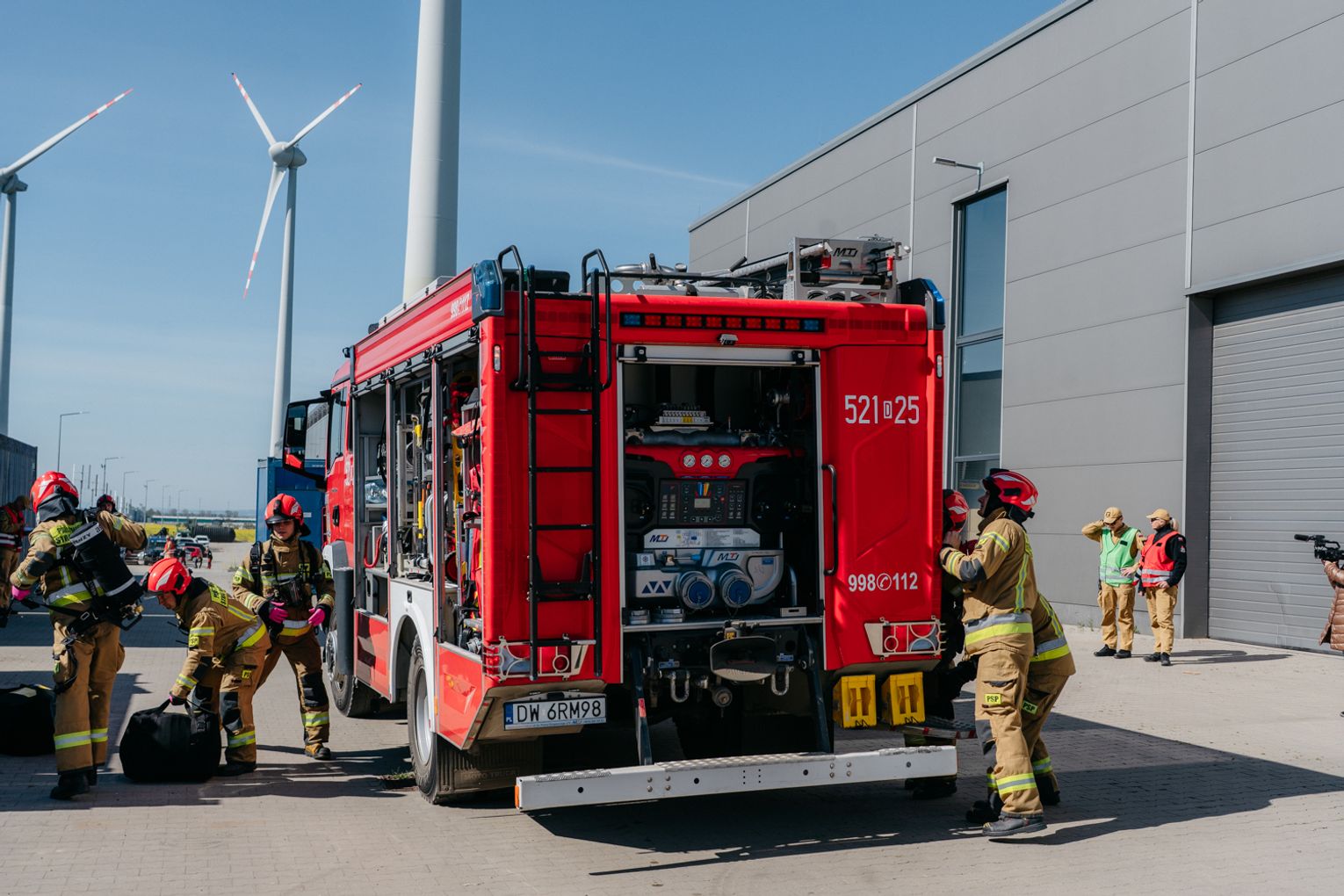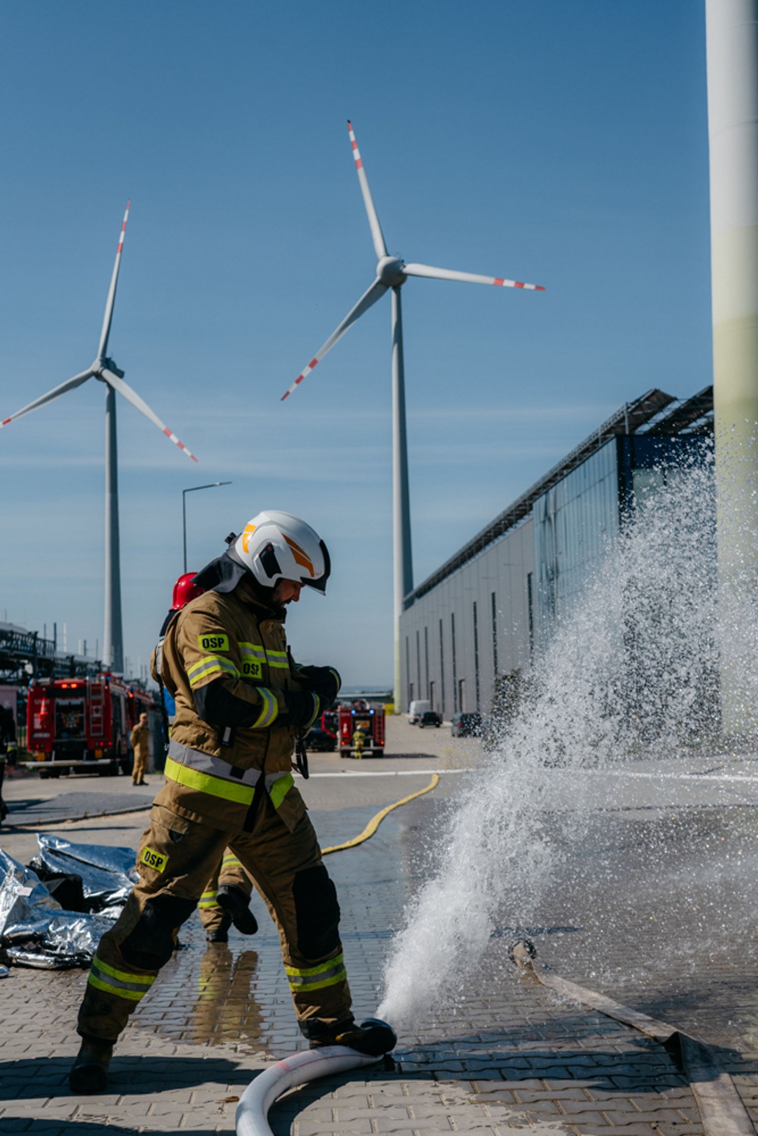 - Witam serdecznie na terenie gminy Oława, w Gaju Oławskim, w zakładzie Promet Plast. Korzystamy z gościnności właścicieli, aby przeprowadzić tegoroczne ćwiczenia powiatowe i sprawdzić gotowość służb ratowniczych do prowadzenia działań - mówił podczas odprawy komendant powiatowy PSP w Oławie mł. bryg. mgr inż. Bartłomiej Marcinów. - Temat przewodni to zdarzenie związane z instalacją wodorową, choć po drodze zadzieją się inne rzeczy, które finalnie doprowadzą do uszkodzenia instalacji wodorowej. Wspierają nas dziś strażacy z Oleśnicy, który pełnią funkcję rozjemców oraz funkcjonariusze z Wrocławia, którzy jako grupa chemiczna będą ćwiczyli podczas jednego z epizodów. Witam Policję, na czele z zastępcą komendanta oraz wszystkich strażaków z PSP oraz druhów-ochotników. Chociaż są to ćwiczenia, nie znamy do końca scenariusza, nie wiemy czego się spodziewać, a musimy przyjechać na miejsce i reagować. Życzę wszystkim, aby to co robimy było bezpieczne. Nie pozwólmy na to, by jakiekolwiek nieodpowiedzialne zachowanie doprowadziło do jakiegoś wypadku. Apeluję o pełne przestrzeganie zasad bezpieczeństwa, o wykonywanie poleceń dowódców, którzy są odpowiedzialni za bezpiecznie przeprowadzenie ćwiczeń. Na pewno nie wszystko się uda, a wnioski, które wypracujemy, po wszystkim wspólnie omówimy.
