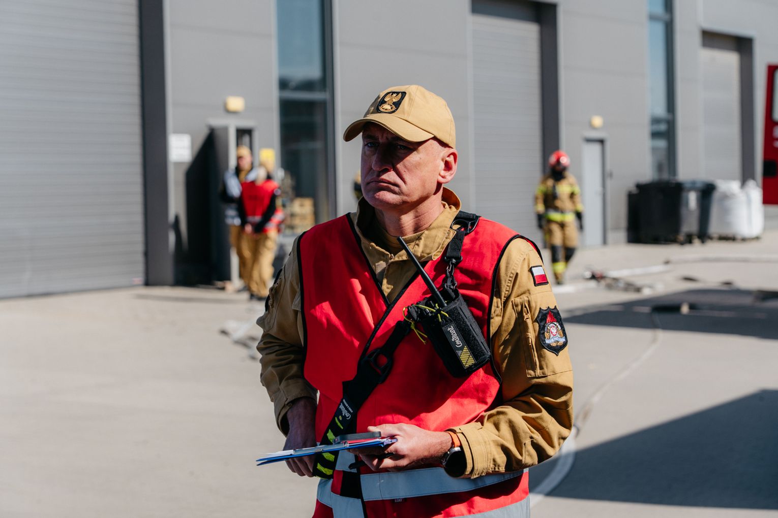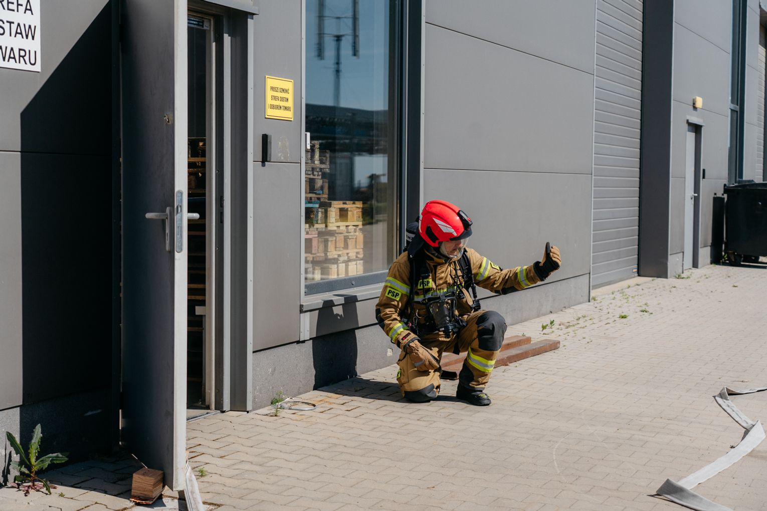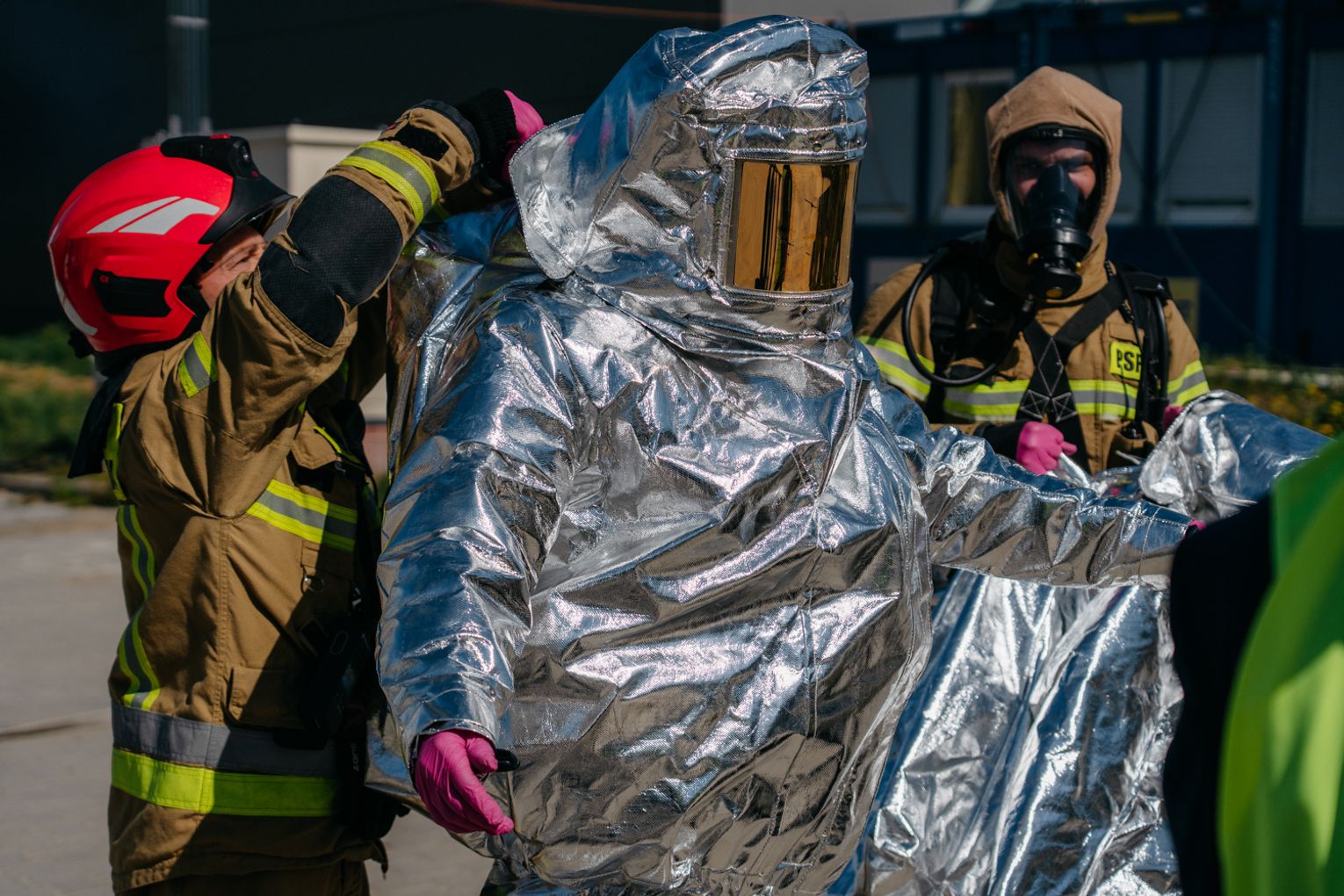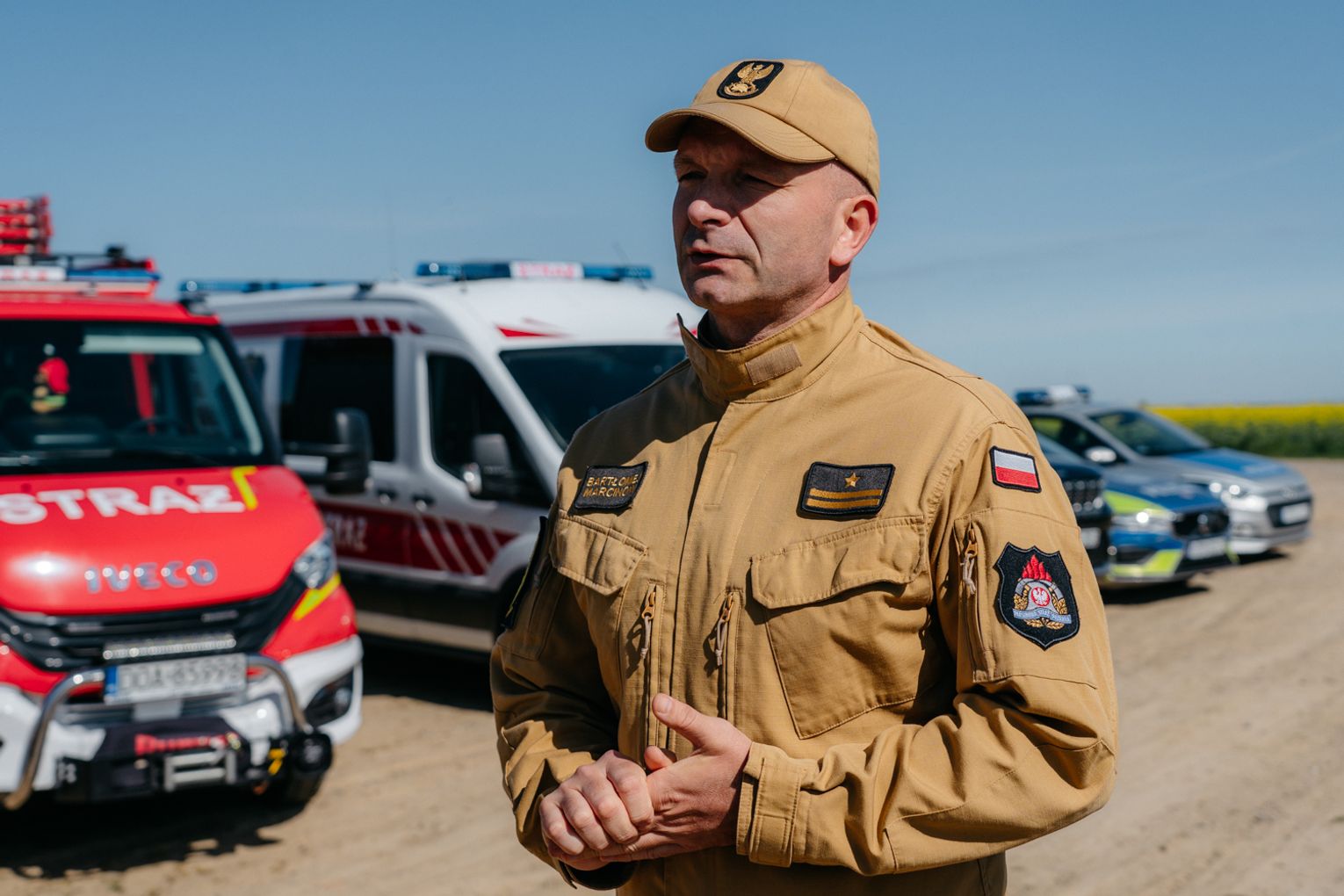 - Witam serdecznie na terenie gminy Oława, w Gaju Oławskim, w zakładzie Promet Plast. Korzystamy z gościnności właścicieli, aby przeprowadzić tegoroczne ćwiczenia powiatowe i sprawdzić gotowość służb ratowniczych do prowadzenia działań - mówił podczas odprawy komendant powiatowy PSP w Oławie mł. bryg. mgr inż. Bartłomiej Marcinów. - Temat przewodni to zdarzenie związane z instalacją wodorową, choć po drodze zadzieją się inne rzeczy, które finalnie doprowadzą do uszkodzenia instalacji wodorowej. Wspierają nas dziś strażacy z Oleśnicy, który pełnią funkcję rozjemców oraz funkcjonariusze z Wrocławia, którzy jako grupa chemiczna będą ćwiczyli podczas jednego z epizodów. Witam Policję, na czele z zastępcą komendanta oraz wszystkich strażaków z PSP oraz druhów-ochotników. Chociaż są to ćwiczenia, nie znamy do końca scenariusza, nie wiemy czego się spodziewać, a musimy przyjechać na miejsce i reagować. Życzę wszystkim, aby to co robimy było bezpieczne. Nie pozwólmy na to, by jakiekolwiek nieodpowiedzialne zachowanie doprowadziło do jakiegoś wypadku. Apeluję o pełne przestrzeganie zasad bezpieczeństwa, o wykonywanie poleceń dowódców, którzy są odpowiedzialni za bezpiecznie przeprowadzenie ćwiczeń. Na pewno nie wszystko się uda, a wnioski, które wypracujemy, po wszystkim wspólnie omówimy.