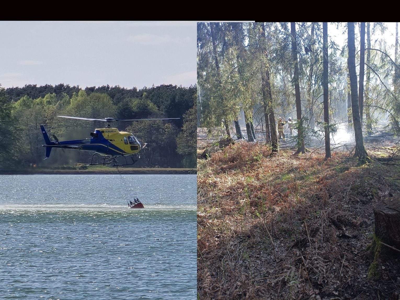 Działania gaśnicze od początku były znacząco utrudnione ze względu na bardzo trudny dojazd do miejsca zdarzenia. Aby skutecznie opanować żywioł, niezbędne okazało się wsparcie z powietrza – w akcji wykorzystano śmigłowiec gaśniczy Lasów Państwowych, który dokonywał precyzyjnych zrzutów wody na palący się las.