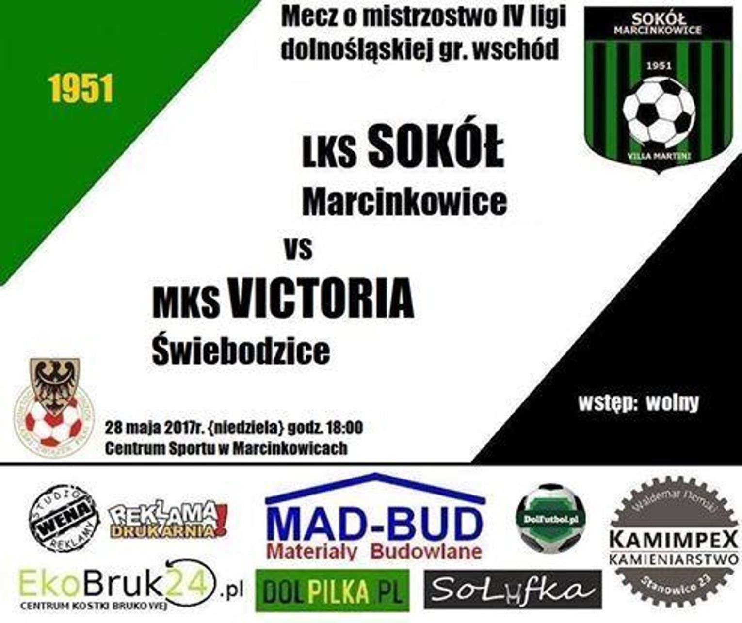 Piłkarze Sokoła Marcinkowice najbliższy mecz o mistrzostwo grupy wschodniej dolnośląskiej IV ligi - z Victoria Świebodzice, rozegrają na