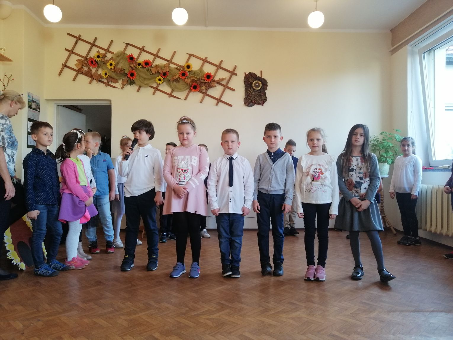 Wraz z wychowawczynią Anną Karpińską i nauczycielką ze szkolnej świetlicy Agnieszką Harężą dzieci odwiedziły Dom Pomocy Społecznej w Oławie. Przygotowały występ artystyczny o tematyce jesiennej. Recytowane wiersze, pięknie zaśpiewane piosenki i gra na instrumentach wywołały na twarzach seniorów uśmiech i dostarczyły wiele radości.