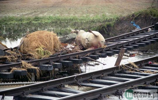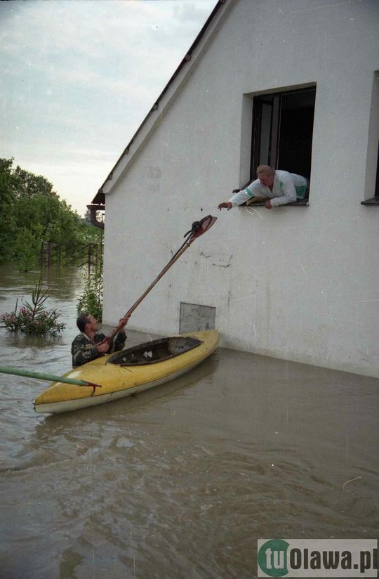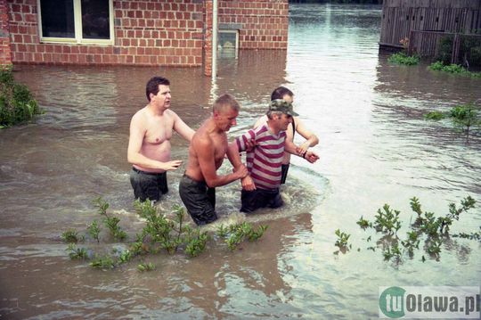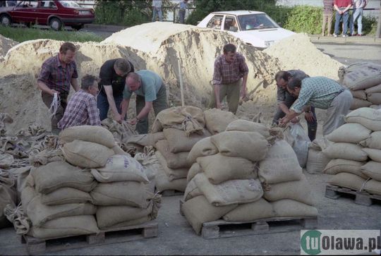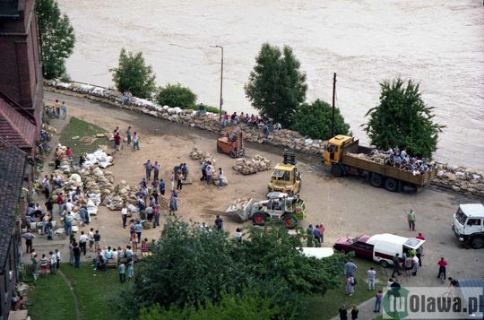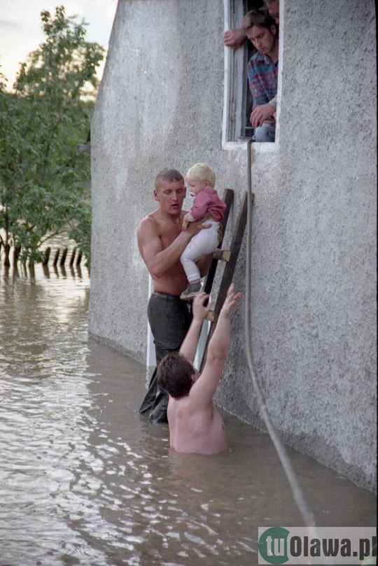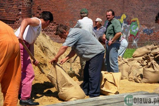 Zdjęcia Jerzego Kamińskiego z archiwum gazetowego. Przedstawiają powódź 1997 roku. Gdzie? Oława - wały. Siedlce, Stary Otok, Stary Górnik, Bystrzyca...