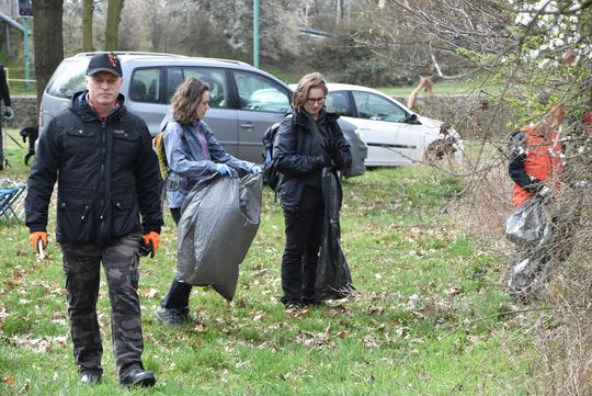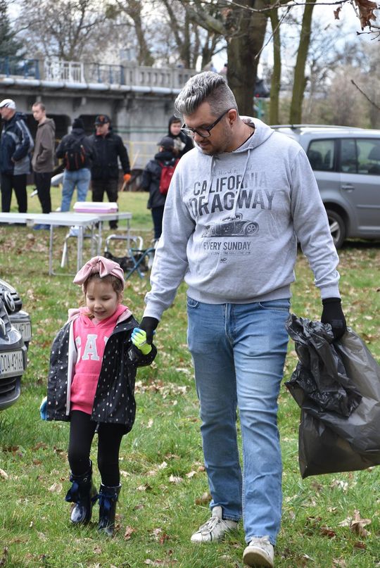 Pożyteczna akcja stowarzyszenia "Wszystko dla Oławy" i lokalnych wędkarzy przy wsparciu firmy Ergis z udziałem kilkudziesięciu osób