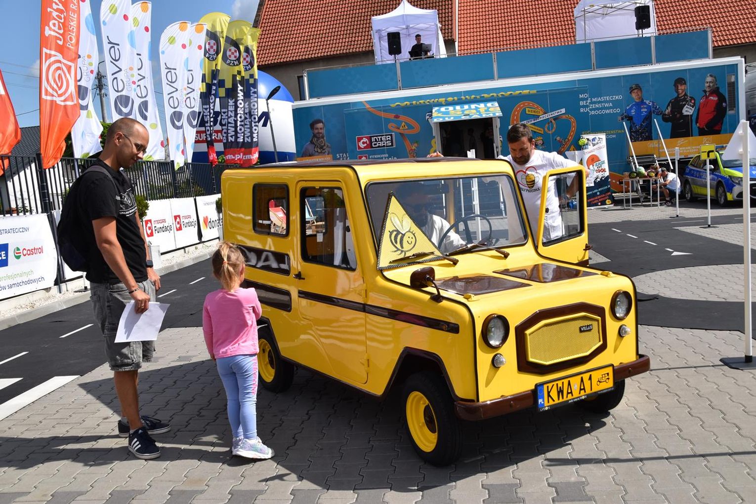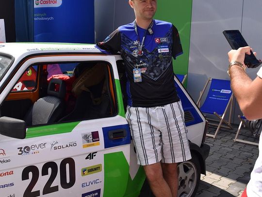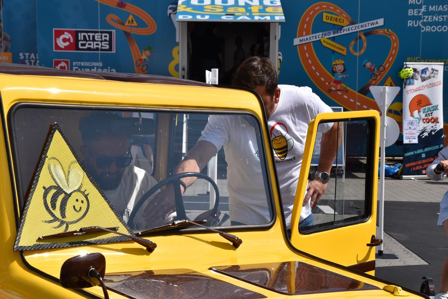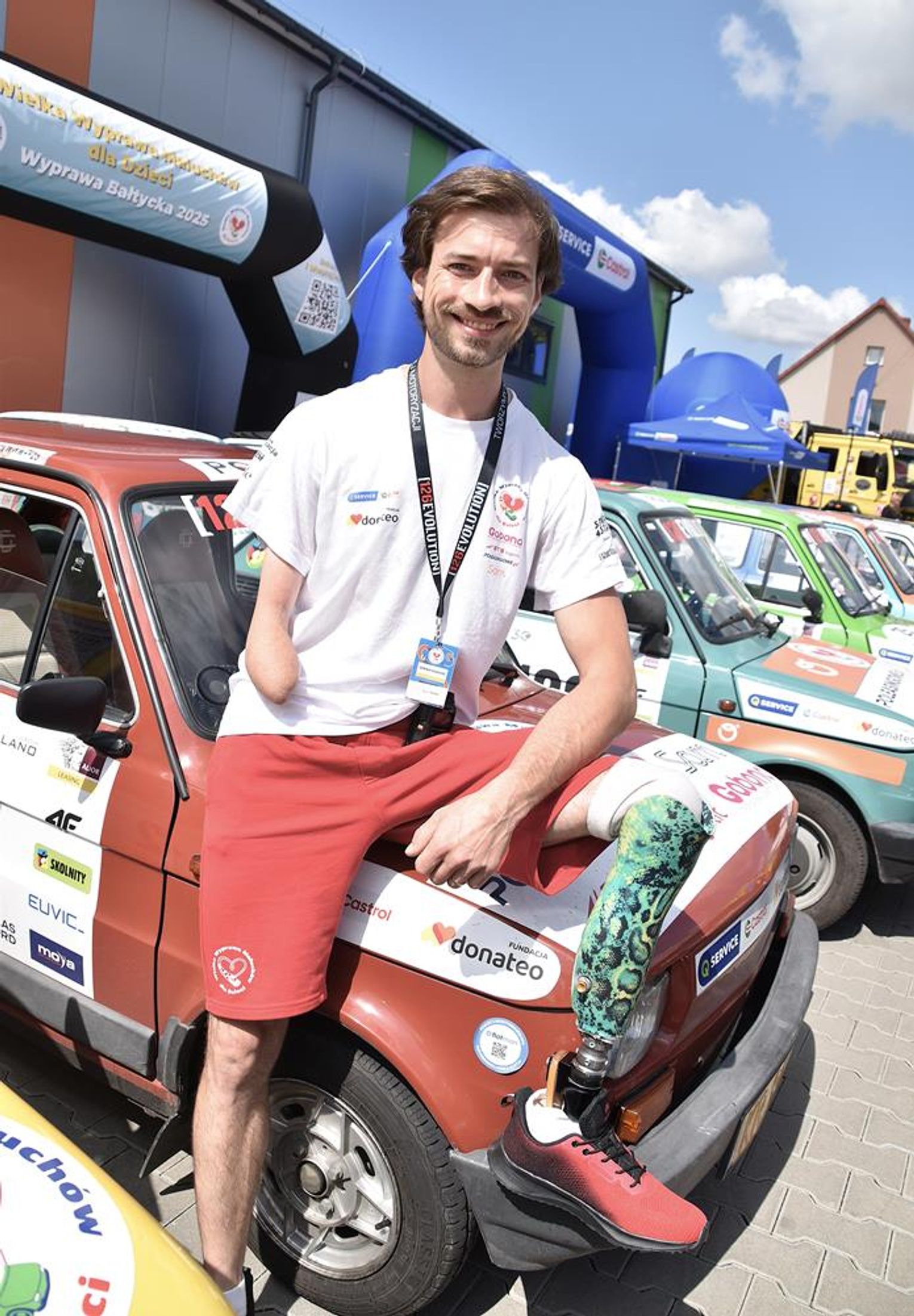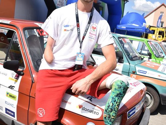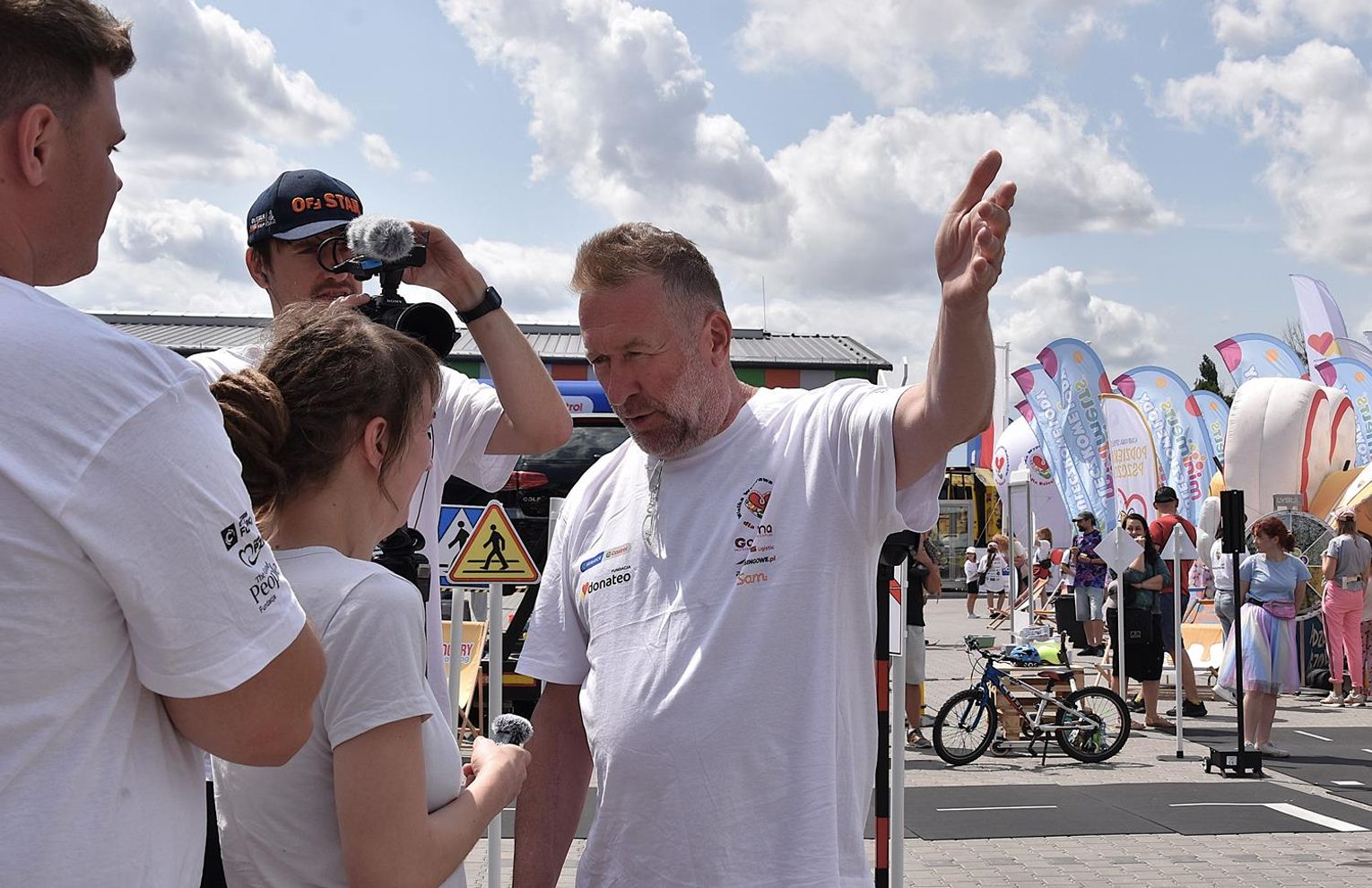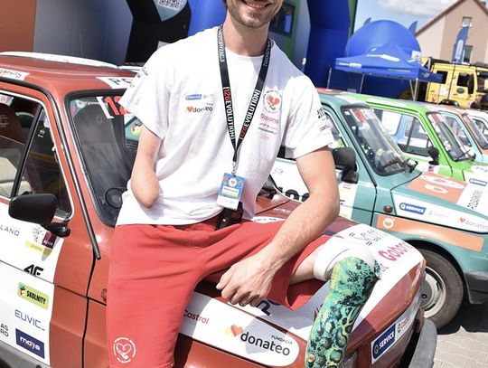 Wśród uczestników imprezy były Bartosz Ostałowski, który prowadzi malucha za pomocą nóg