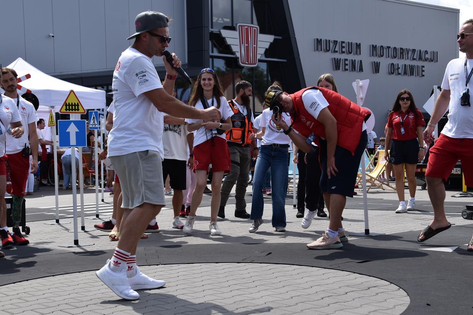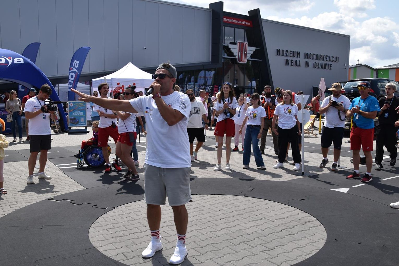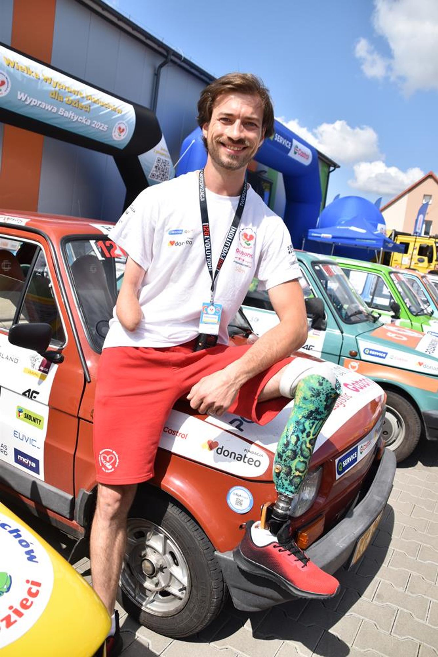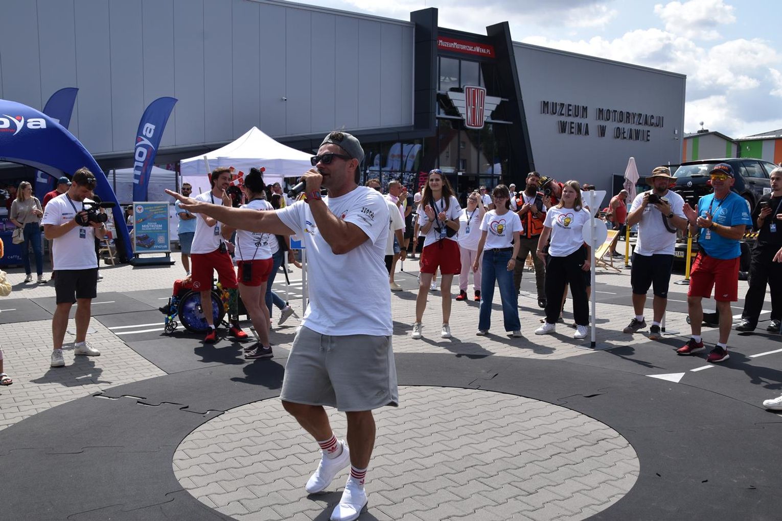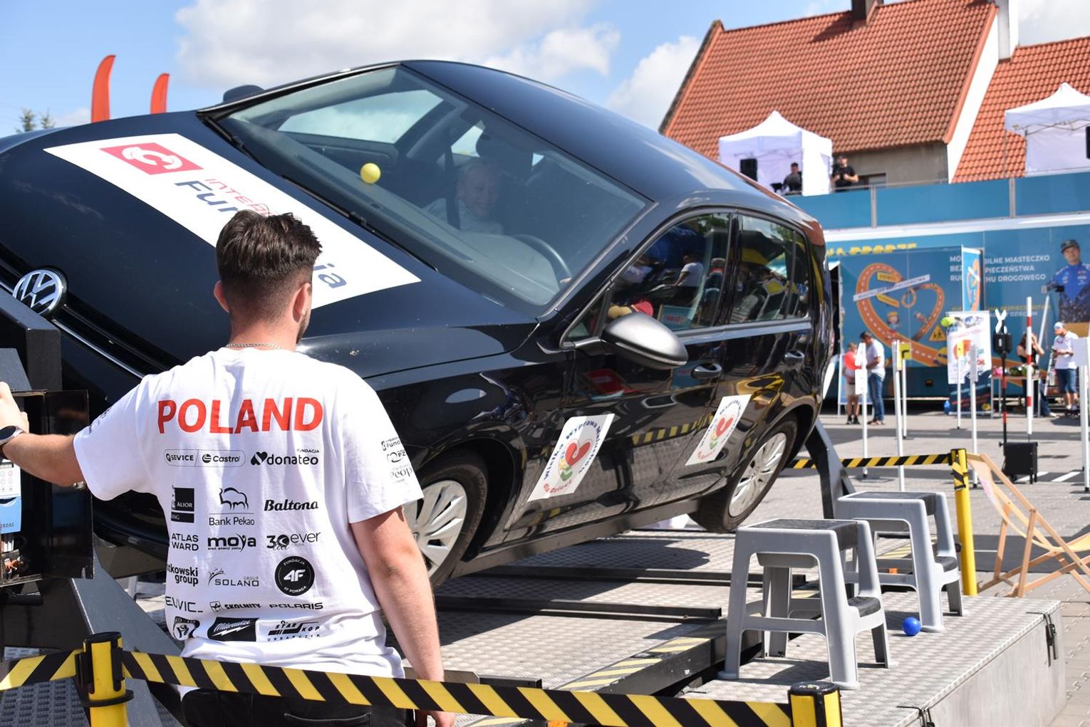 Wśród uczestników imprezy były Bartosz Ostałowski, który prowadzi malucha za pomocą nóg