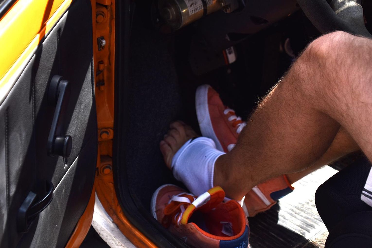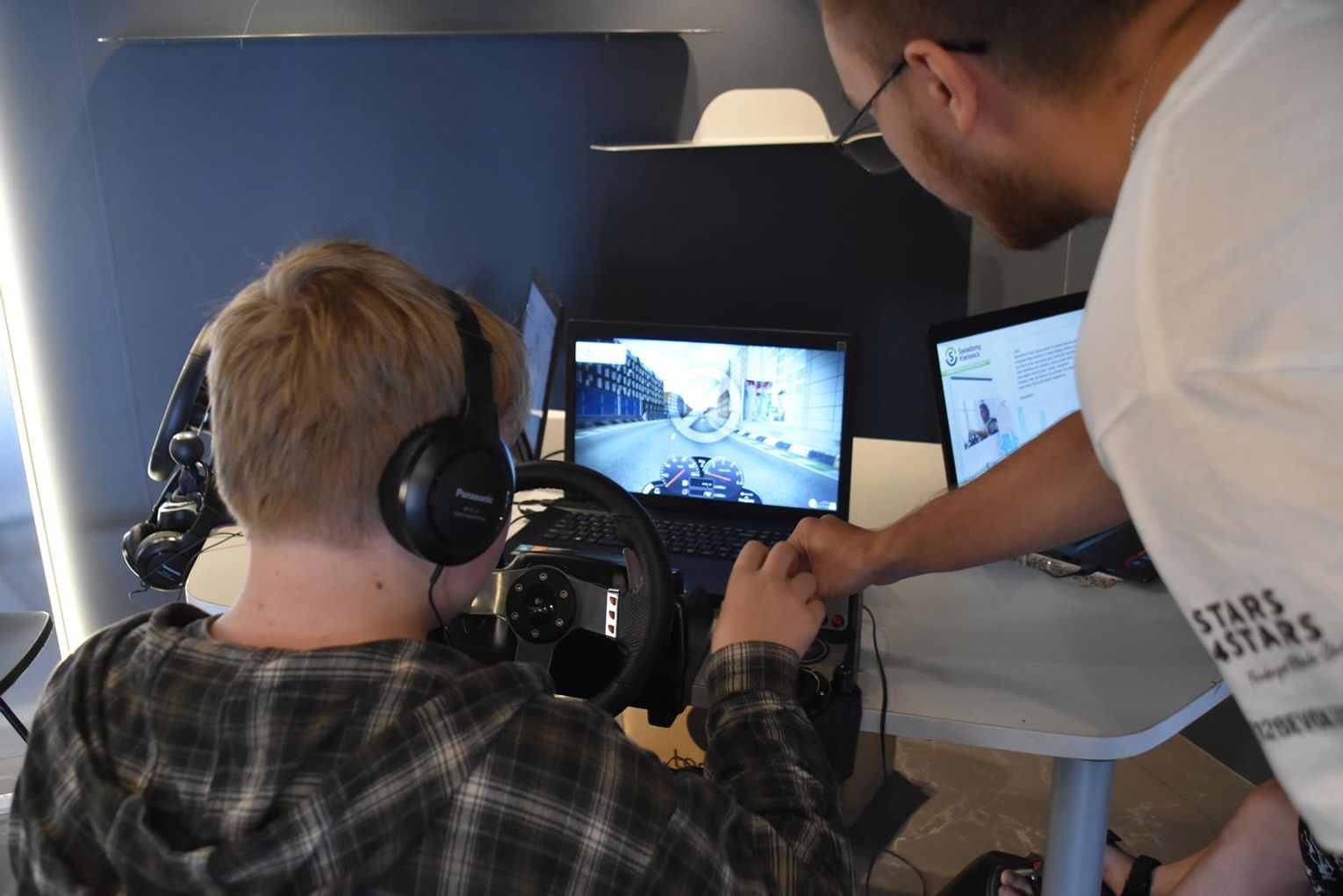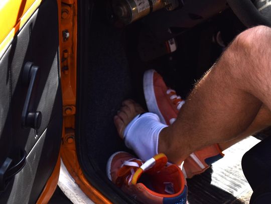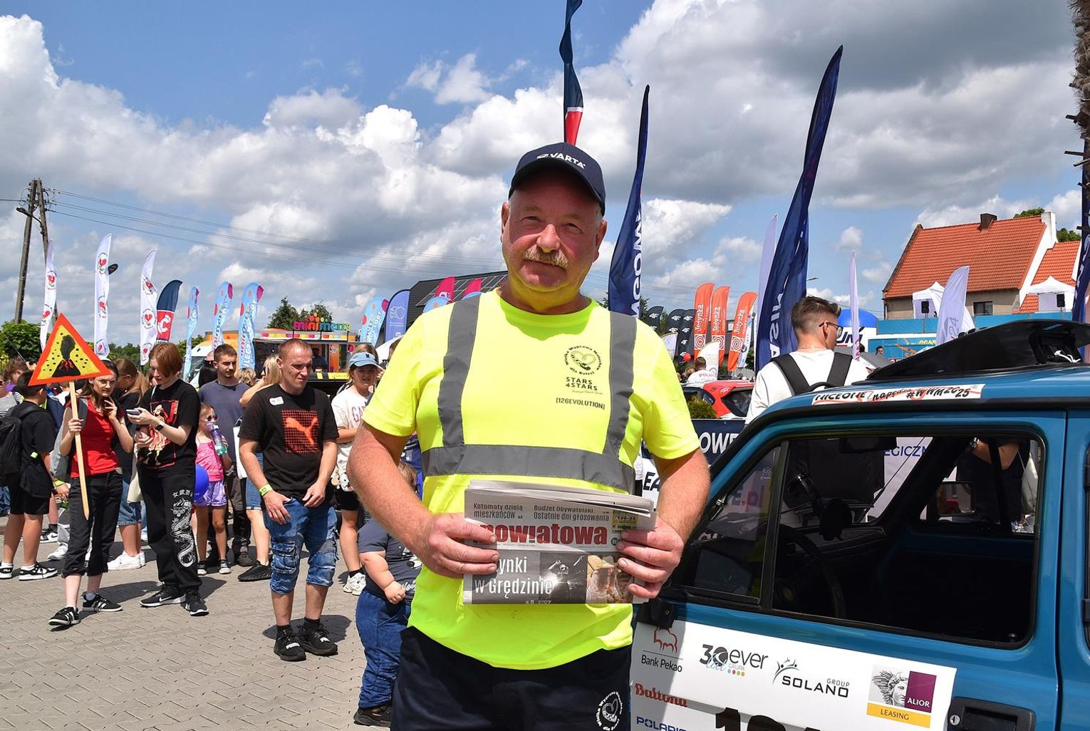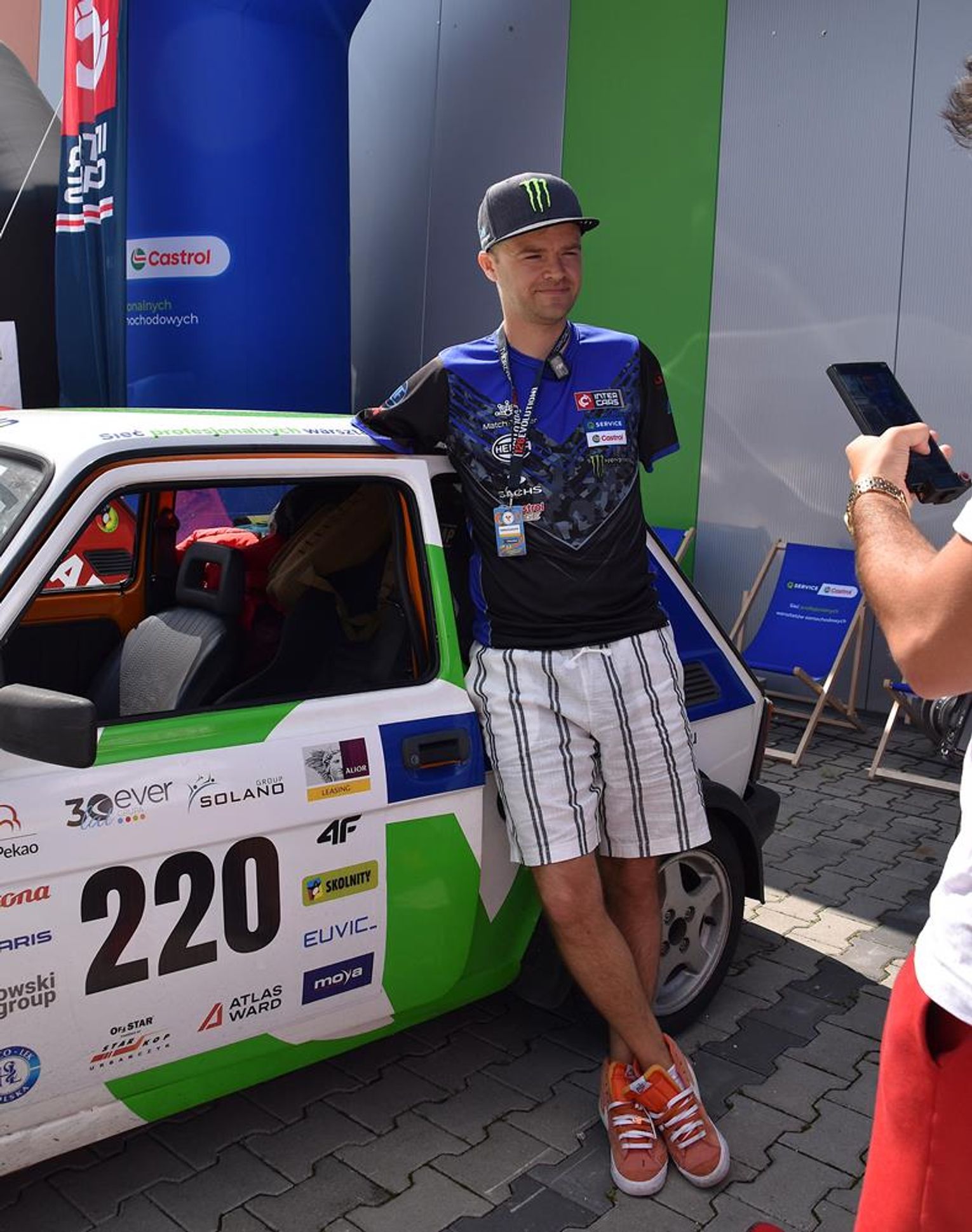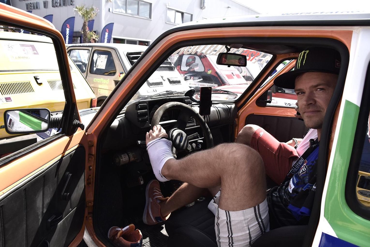 Wśród uczestników imprezy były Bartosz Ostałowski, który prowadzi malucha za pomocą nóg