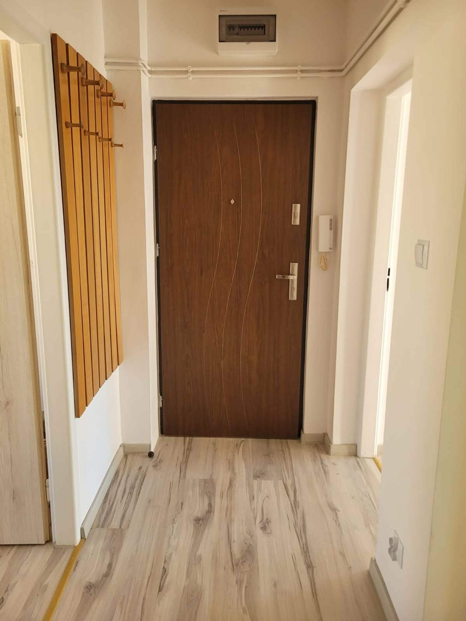 Przedpokój z solidną i funkcjonalną nową szafą.